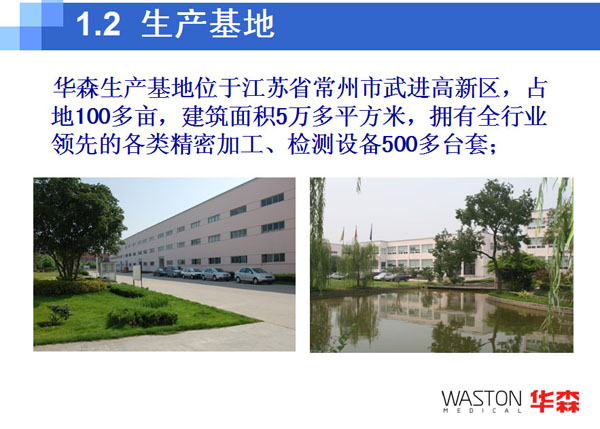 華森醫(yī)療集團是常州聯(lián)合工具集團控股的,由常州華森醫(yī)療器械有限公司、常州華森生物科技有限公司、常州華森醫(yī)療科技有限公司、華森三家聯(lián)動科技創(chuàng)新中心、上海民衛(wèi)醫(yī)療器械有限公司等企業(yè)組成的集研發(fā)、制造、銷售、服務于一體的專業(yè)化醫(yī)療、健康產(chǎn)業(yè)集團。 公司總部坐落于風景秀麗的江南制造業(yè)基地——常州市武進高新區(qū),西鄰常州飛機場,北靠滬寧高速公路,南依沿江高速公路,交通十分便利。 集團核心成員——常州華森醫(yī)療器械有限公司是由常州聯(lián)合工具集團和日本オーテー株式會社在2001年聯(lián)合投資5000萬人民幣成立的,專注于骨科、胸外科植入物等產(chǎn)品的開發(fā)、制造、營銷、服務的醫(yī)療器械專業(yè)廠家。自2001年成立以來已經(jīng)成為行業(yè)領(lǐng)先的和國內(nèi)最具活力的公司之一。 華森醫(yī)療公司采用事業(yè)部制管理結(jié)構(gòu),現(xiàn)公司下設為骨科事業(yè)部、吻合器事業(yè)部、手術(shù)工具事業(yè)部及胸外科產(chǎn)品事業(yè)部等四大事業(yè)部。主要生產(chǎn)三類6846骨科植入物及人工 、二類6801基礎外科手術(shù)器械、6825醫(yī)用高頻儀器設備、6808腹部外科手術(shù)器械及吻(縫)合器,專利爪型純鈦肋骨接骨板等產(chǎn)品。 公司三大生產(chǎn)基地占地面積100多畝,建筑面積35000多平方米,十萬級凈化車間2000多平方米。中高級以上職稱的研發(fā)、生產(chǎn)、質(zhì)控、管理人員占員工總?cè)藬?shù)的30%以上。公司設備精良,擁有包括德國DMG、CHIRON、美國HASS五軸加工中心、日本STAR縱切機床、SODICK慢走絲線切割在內(nèi)的著名品牌加工中心及其它高精密度機械加工設備一百多臺套,檢測設備齊全。公司與北京協(xié)和醫(yī)院,北京軍區(qū)總醫(yī)院,南京醫(yī)科大學、蘇州大學等著名醫(yī)院、學院進行學術(shù)、技術(shù)聯(lián)盟,并依托兩大母公司的雄厚實力形成了強大的研發(fā)力量和生產(chǎn)能力。 華森公司為ISO13485:2003(YY/T0287-2003)國際質(zhì)量體系認證企業(yè),所有產(chǎn)品全面通過歐盟CE認證,其中華森吻合器已經(jīng)率先獲得了美國FDA510(K)認證。經(jīng)過幾年的努力,華森WASTON品牌產(chǎn)品不僅出口到南美、中東、東南亞、東歐、北非等發(fā)展中國家,而且已經(jīng)開始進入美國、法國、瑞士、德國、意大利、英國等歐美傳統(tǒng)發(fā)達國家。特別是與美國、歐洲的一些行業(yè)著名企業(yè)建立了合作聯(lián)盟關(guān)系,為華森產(chǎn)品達到或超過國際同類產(chǎn)品打下了堅實的基礎。 我們歡迎國內(nèi)外新老客商、朋友前來華森考察洽談、技術(shù)交流、合作合資,與華森公司共創(chuàng)美好明天。