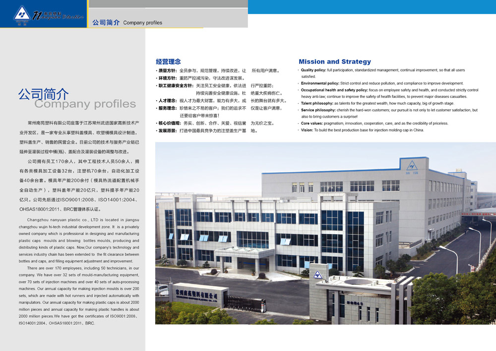 常州南苑塑料有限公司是一家專業(yè)從事塑料蓋模具、吹塑桶模具設(shè)計制造及塑料蓋產(chǎn)品生產(chǎn)和銷售的民營企業(yè)。公司創(chuàng)建于1991年,總投資8000萬元,擁有工程技術(shù)人員50余人,品質(zhì)管理人員20余人;各類注塑設(shè)備70余臺套。模具加工設(shè)備40余臺套,模具年產(chǎn)能200余付,塑料蓋年產(chǎn)能20億只,塑料提手年產(chǎn)能20億只。產(chǎn)品涉及潤滑油、食品和保健品行業(yè)。主要客戶有:中石化、中石油、道達爾、埃爾夫、景田、怡寶、農(nóng)夫山泉等知名品牌的生產(chǎn)商!