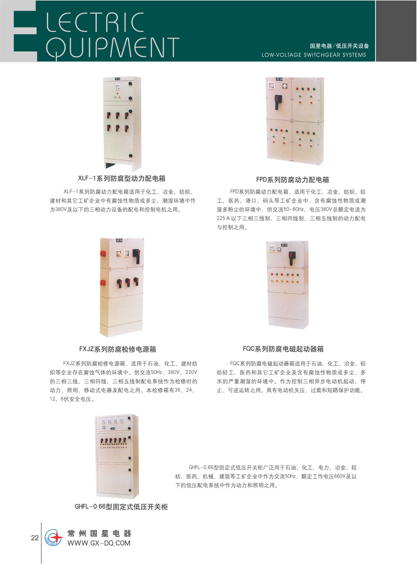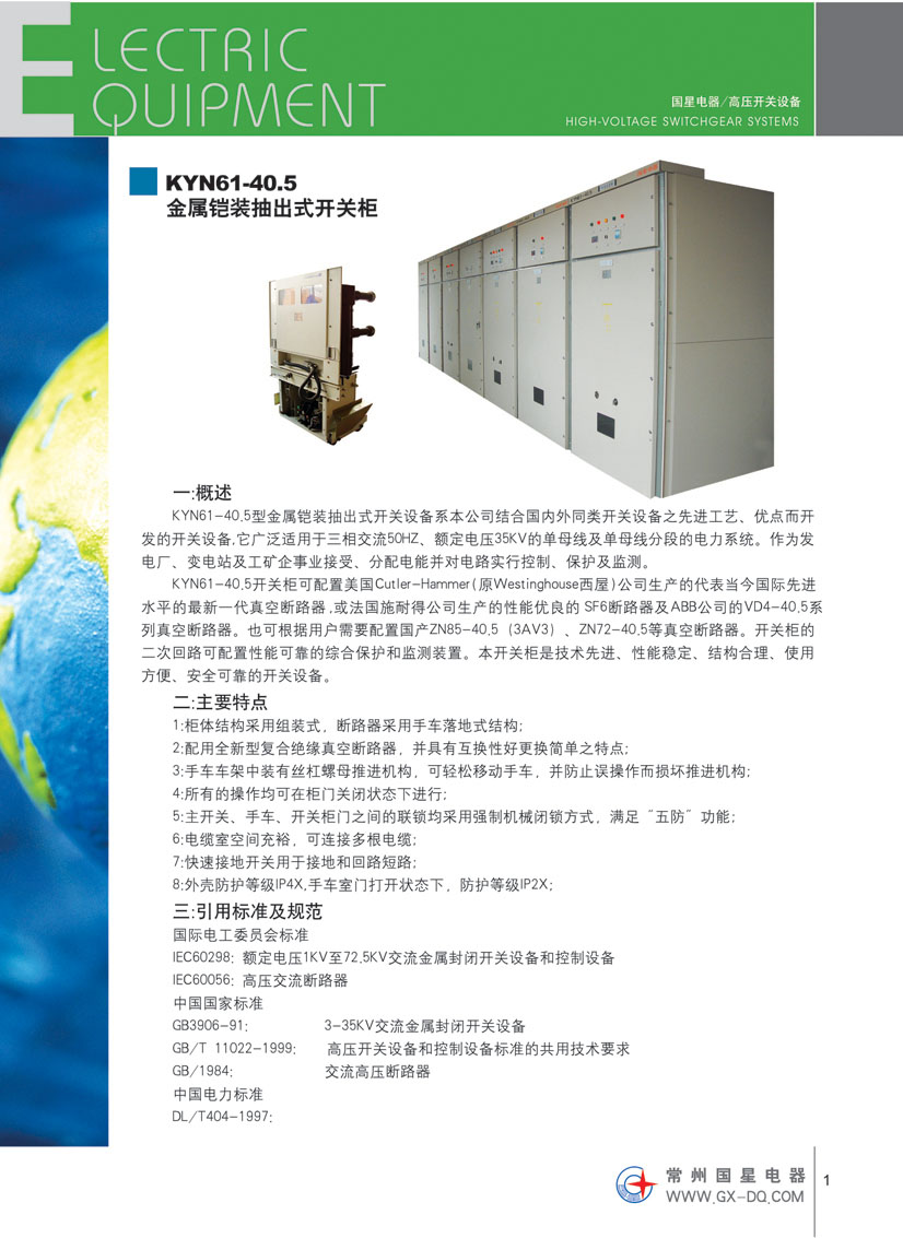 在生產(chǎn)電器元件的基礎(chǔ)上,我公司相繼開(kāi)發(fā)了高低壓電器成套開(kāi)關(guān)設(shè)備,其中包括:YBWW1系列無(wú)飛弧智能型組合(箱)式預(yù)裝變電站;KYN61-40.5交流金屬封閉開(kāi)關(guān)設(shè)備;KYN28-24/3150-31.5鎧裝移開(kāi)式交流金屬封閉開(kāi)關(guān)設(shè)備;KYN28-12鎧裝移開(kāi)中置式交流金屬封閉開(kāi)關(guān)柜;XGN15-12單元六氟化硫環(huán)網(wǎng)柜;XGN2-12固定式高壓環(huán)網(wǎng)柜;MNS、GCS、GCK、GBD、GGD低壓開(kāi)關(guān)柜;防腐、防爆動(dòng)力箱、配電箱、檢修箱;各種非標(biāo)動(dòng)力箱、控制屏,產(chǎn)品均獲CCC認(rèn)證,并引進(jìn)英國(guó)技術(shù)開(kāi)發(fā)防腐型GCF-2500低壓抽屜式柜,國(guó)內(nèi)首創(chuàng)。