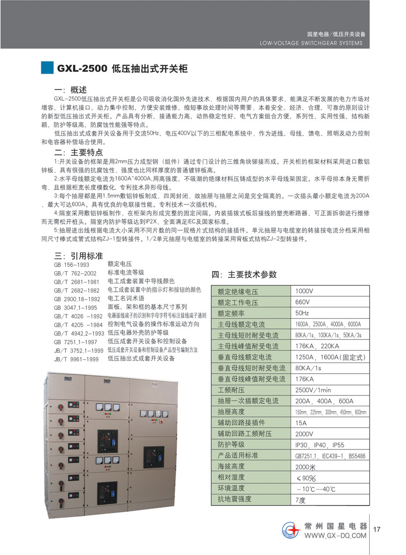 江蘇國(guó)星電器有限公司是國(guó)家定點(diǎn)生產(chǎn)“國(guó)星”牌低壓電器元件的專(zhuān)業(yè)公司,主要生產(chǎn)GXW45(DW45)、GXW50(DW50)、GXW2(DW15HH)系列智能型萬(wàn)能式斷路器;GXDK2智能型低壓真空斷路器;GXW1(DW16)系列萬(wàn)能式斷路器及由其派生的GXW1RD礦用斷路器;GXW1M、GXW2M自動(dòng)滅磁開(kāi)關(guān)榮獲國(guó)家發(fā)明專(zhuān)利、實(shí)用新型專(zhuān)利;DW15、DW15C及DWX15系列萬(wàn)能式斷路器; GXM1和GXM2系列塑料外殼式斷路器;GXM1L系列帶剩余電流保護(hù)塑料外殼式斷路器;GXM1LC漏電斷路器及漏電智能型斷路器;GXSQ2P雙電源自動(dòng)切換裝置;HD17(X)系列刀形隔離器;HS17(X)系列刀形轉(zhuǎn)換隔離器;Jz20系列接觸式繼電器。