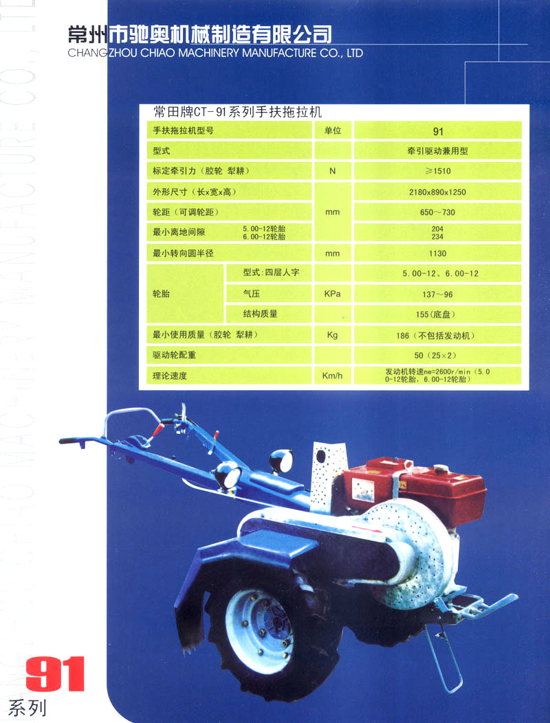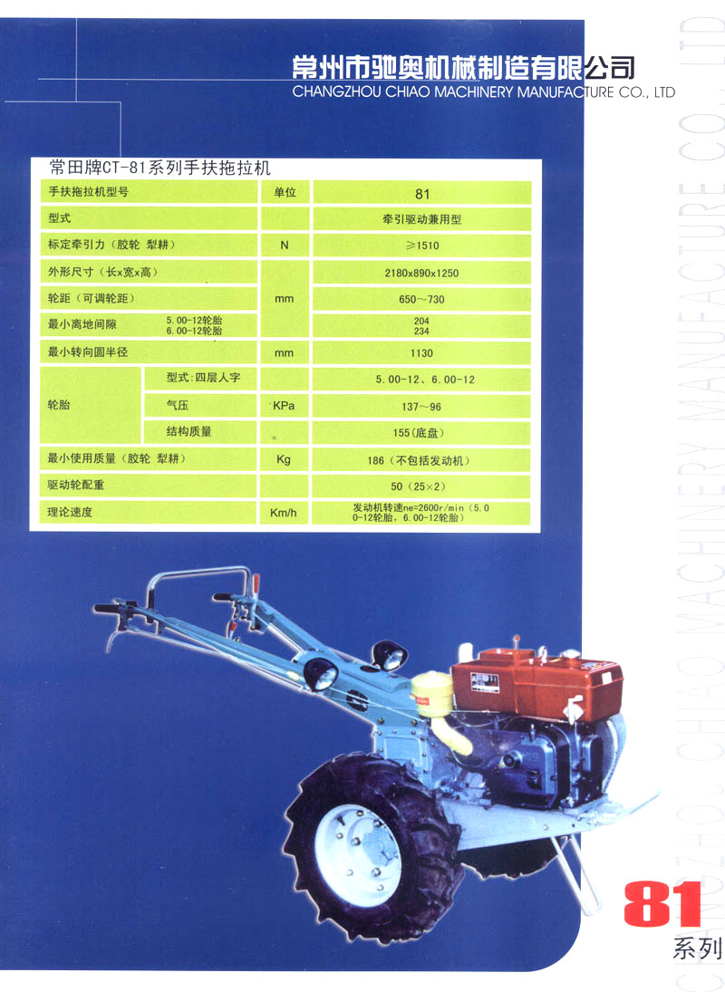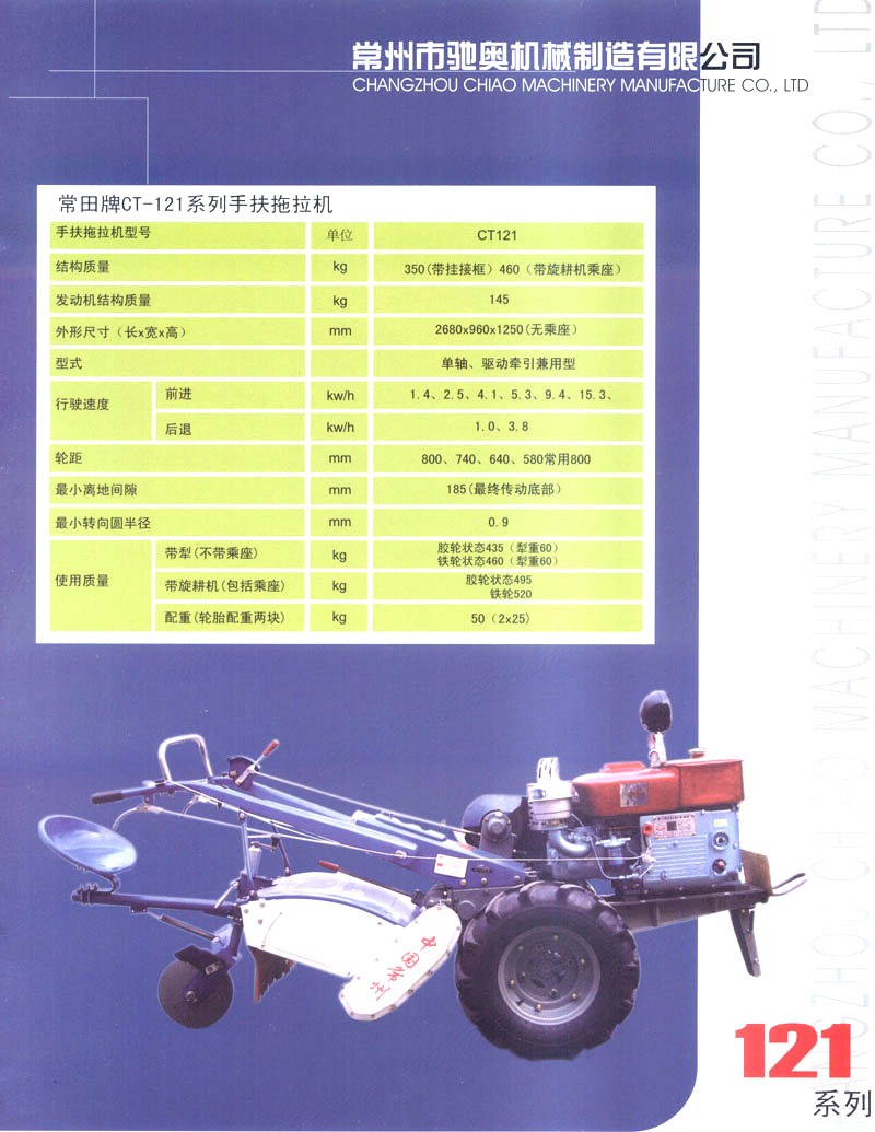 常州市馳奧機械制造有限公司是生產(chǎn)手扶拖拉機的專業(yè)生產(chǎn)企業(yè),公司位于風(fēng)景秀麗、人文薈萃的江蘇省常州市,緊鄰滬寧、寧常高速以及312國道,交通極為便利。公司擁有先進的手扶拖拉機生產(chǎn)線,主要生產(chǎn)81/91,121/151型手扶拖拉機,產(chǎn)品均為國家農(nóng)機購置補貼產(chǎn)品。 公司堅持以科技興企業(yè),在提高產(chǎn)品技術(shù)含量的同時,加強產(chǎn)品質(zhì)量、售后服務(wù)方面的監(jiān)督與管理,根據(jù)市場需求提升改進和研發(fā)新產(chǎn)品,使公司產(chǎn)品得到了市場的認(rèn)可,贏得了廣大農(nóng)民用戶的一致好評。 公司將本著“誠信經(jīng)營、質(zhì)量第一、客戶至上”的經(jīng)營理念,立足現(xiàn)在、著眼未來,以打造常州一流的農(nóng)機品牌為目標(biāo),在提升產(chǎn)品技術(shù)、保障產(chǎn)品質(zhì)量的同時,不斷研發(fā)新產(chǎn)品,最大程度的滿足用戶需求,為我國農(nóng)業(yè)機械現(xiàn)代化發(fā)展做出應(yīng)有的貢獻!