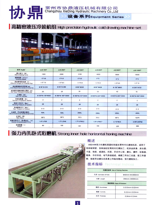 主要生產(chǎn)經(jīng)營(yíng):精密冷拔鋼管,珩磨鋼管,精密活塞桿,液壓油缸、氣缸設(shè)計(jì)制造.高精密液壓冷拔機(jī)、液壓矯直機(jī)、珩磨機(jī)、掏料機(jī)設(shè)計(jì)制造。公司設(shè)有專業(yè)的生產(chǎn)工廠,有多年從事液壓工程研究設(shè)計(jì)的專家及有豐富實(shí)踐經(jīng)驗(yàn)的工程技術(shù)人員,有專用的生產(chǎn)設(shè)備,先進(jìn)的生產(chǎn)工藝,以及完善的質(zhì)量保證體系,以確保產(chǎn)品的質(zhì)量,用最佳的售后服務(wù)為客戶增值。