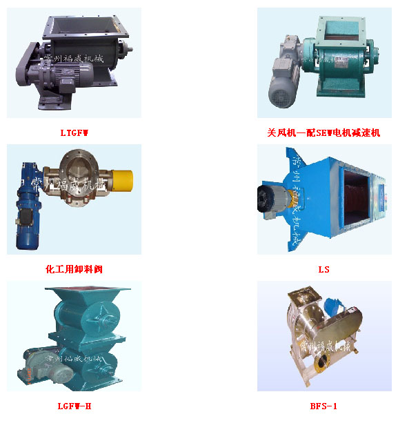 公司生產(chǎn)的關風機、旋轉閥、星型裝卸料裝置、螺旋輸送機,共有TGF、ZGF、ZGFW、ZGFWE、ZGFWF等十多種機型,五十多種規(guī)格,百余種參數(shù),制造材質有鑄鐵、碳鋼、不銹鋼等,可滿足不同介質、不同工況的要求。產(chǎn)品廣泛應用于糧油、食品、飼料、化工、制藥、干燥、除塵等行業(yè)。