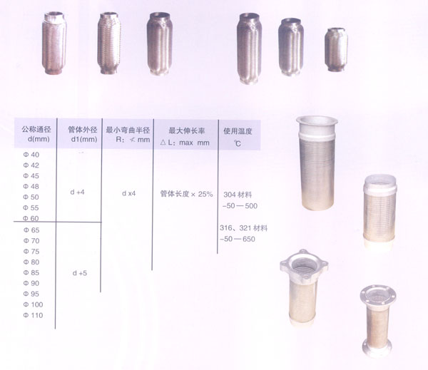 我公司生產的膨脹節(jié)和金屬軟管采用美國膨脹節(jié)制造協(xié)會(EJMA)標準及國家標準GB/T1 2777—91.GB/T1 4525—93,并參照日、德廠商技術參數(shù),以綜合性能為目標進行計算機優(yōu)化設計,輔以完整的檢測手段,產品質量優(yōu)良,品種繁多,規(guī)格齊全。