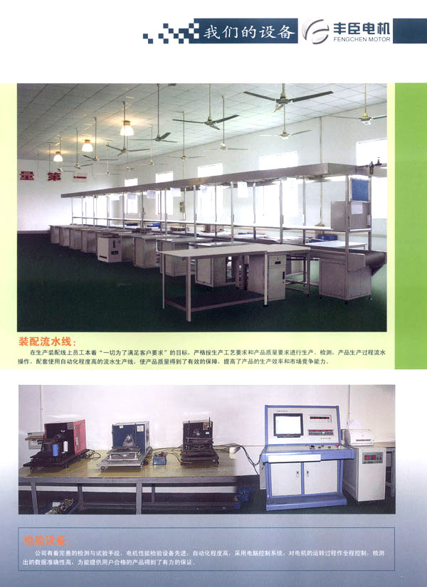 豐臣電機(jī)公司專業(yè)生產(chǎn)從YY70-YY145系列感應(yīng)電動(dòng)機(jī),年生產(chǎn)能力達(dá)150萬(wàn)臺(tái),年生產(chǎn)總值近1億元人民幣。公司現(xiàn)擁有員工300余人,其中高級(jí)工程師、高級(jí)技師、高級(jí)管理人員及其它專業(yè)技術(shù)人員40余人;擁有先進(jìn)的生產(chǎn)能力、企業(yè)管理能力、技術(shù)開發(fā)能力、質(zhì)量管理經(jīng)驗(yàn);具有各類專業(yè)生產(chǎn)設(shè)備25臺(tái)(套),專業(yè)檢測(cè)設(shè)備器具50余套。