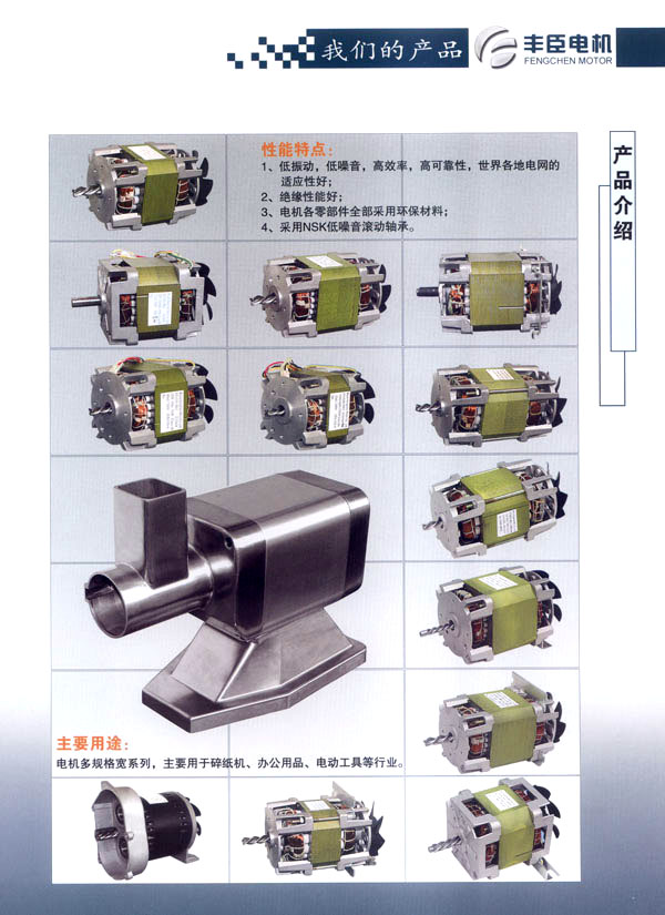 本公司在發(fā)揮傳統(tǒng)技術(shù)優(yōu)勢(shì)的基礎(chǔ)上,積極開展多方位的技術(shù)合作,協(xié)同常州市津盛辦公用品有限公司開發(fā)感應(yīng)電機(jī)產(chǎn)品市場(chǎng)。公司引進(jìn)國(guó)際上先進(jìn)的全自動(dòng)浸漆生產(chǎn)線,產(chǎn)品生產(chǎn)自動(dòng)化程度高,產(chǎn)品質(zhì)量穩(wěn)定可靠。電機(jī)表面有噴漆、涂塑等防腐處理,產(chǎn)品具美觀、耐腐蝕、安裝簡(jiǎn)便等優(yōu)點(diǎn),廣泛應(yīng)用于辦公設(shè)備用品、電動(dòng)工具等行業(yè)。