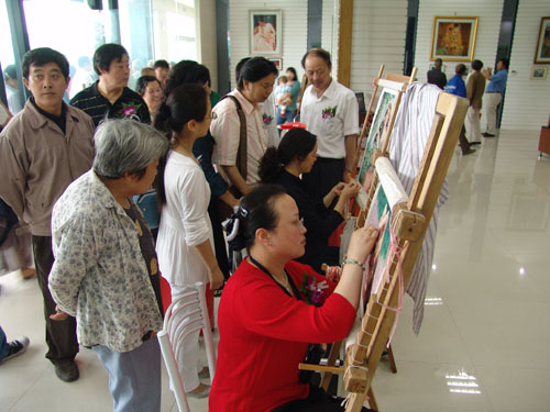 狄靜亂針繡工作室由江蘇省工藝美術(shù)大師,江蘇省非物質(zhì)文化遺產(chǎn)傳承人,研究員級高級工藝美術(shù)師狄靜創(chuàng)立于1999年,現(xiàn)已初具規(guī)模,每年能手工繡制作品上百幅,是國家、省、市政府對外交流禮品的指定繡制單位,當(dāng)之無愧地成為宣傳常州特色手工藝品的主陣地,常州最具影響力的對外藝術(shù)交流名片。 2004年,狄靜亂針繡工作室受常州市文廣新局、常州劉海粟美術(shù)館的邀請,在劉海粟美術(shù)館內(nèi)開設(shè)常州亂針繡館。作為狄靜亂針繡工作室常年的對外展示窗口,現(xiàn)在常州亂針繡館每天接待參觀人數(shù)達(dá)百余人次。2008年6月,常州狄靜亂針繡工作室受市文廣新局和新北區(qū)政府的邀請,加盟坐落薛家鎮(zhèn)“華夏工藝美術(shù)產(chǎn)業(yè)博覽園”,至今年接待參觀人達(dá)數(shù)萬人。 狄靜亂針繡工作室的作品以繡工精到、形象逼真、色彩豐富、立體感強(qiáng)等特點(diǎn)被眾多收藏家收藏,遠(yuǎn)銷世界各國。該工作室的作品多次被中國政府作為國禮贈送給斯里蘭卡總統(tǒng)、阿曼國王和王子、美國LU公司總裁副總裁全家、美國總統(tǒng)顧問團(tuán)顧問張緒通教授等。常州市政府也在本工作室訂制亂針繡肖像贈送給香港政務(wù)司司長唐英年、日本議員、和為常州建設(shè)發(fā)展作出貢獻(xiàn)的各國友人。工作室的人像繡藝術(shù)作品尤為被世界各地藝術(shù)品收藏家關(guān)注,紛紛前來定繡,著名的香港實業(yè)家李兆基先生先后兩次到狄靜亂針繡工作室,定繡了自己的大幅肖像。臺灣名人焦定標(biāo)先生、香港著名實業(yè)家查濟(jì)民先生、美國通用公司總裁等都到狄靜亂針繡定繡自己和家人的肖像。 狄靜亂針繡工作室在弘揚(yáng)傳統(tǒng)文化,培育優(yōu)秀傳承人才的道路上始終堅持不懈。2004年起,在常州文化館內(nèi)開設(shè)免費(fèi)亂針繡培訓(xùn)班,到目前已有1000多名學(xué)員學(xué)習(xí)了亂針繡藝術(shù)。2009年,應(yīng)重慶市大渡口區(qū)政府的邀請,狄靜將亂針繡培訓(xùn)班開到重慶,為重慶市的學(xué)生和部分下崗女工傳授亂針繡技藝。狄靜亂針繡工作室內(nèi),還有不遠(yuǎn)萬里從德國、泰國、韓國、捷克斯洛伐克等國慕名來求學(xué)的外籍學(xué)生,她們現(xiàn)在都已有作品問世。其中泰國學(xué)生陳玉鸞女士,懷著對國王無限崇敬的心情,在狄靜老師悉心指導(dǎo)下繡出了一幅泰國普密蓬國王的繡像。2008年1月,狄靜受到泰國國王的邀請,與陳玉鸞女士一起走進(jìn)泰國王宮親手將作品敬獻(xiàn)普密蓬國王,普密蓬國王對形神兼?zhèn),絲光閃爍的藝術(shù)珍品十分稱頌和贊賞。 多年來,狄靜亂針繡工作室直面挑戰(zhàn),不斷壯大發(fā)展亂針繡工作室的規(guī)模,F(xiàn)工作室擁有一支以狄靜為首的、技藝精湛的、刺繡精英為主體的繡娘團(tuán)隊,是一個高水平、高素質(zhì)的亂針繡藝術(shù)群體,集亂針繡精品繡制、展示和技藝研究為一體,以打造精品的理念創(chuàng)作多題材、多層次的亂針繡藝術(shù)精品。