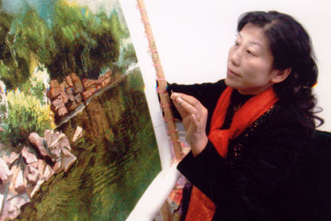 狄靜簡介: 狄靜現(xiàn)為江蘇省工藝美術(shù)大師,江蘇省非物質(zhì)文化遺產(chǎn)傳承人,研究員級高級工藝美術(shù)師,常州工藝美術(shù)家協(xié)會副主席兼秘書長,常州工藝美術(shù)行業(yè)協(xié)會副會長,1995年被聯(lián)合國教科文組織授予“民間工藝美術(shù)家”稱號。狄靜七十年代進(jìn)常州市工藝美術(shù)研究所從事亂針繡藝術(shù)工作,曾受亂針繡創(chuàng)始人楊守玉先生親自指導(dǎo)和教誨。她從一名學(xué)員逐步走上了常州市工藝美術(shù)研究所亂針繡研究室主任,副所長、所長的崗位。 多年來,狄靜獨(dú)立完成的作品獲得了諸多榮譽(yù): 1993年《鄧小平》入選第一屆工藝美術(shù)名家作品展, 1995年被聯(lián)合國教科文組織授予“民間工藝美術(shù)家”稱號, 1997年受新加坡政府邀請,進(jìn)行為期一個月的文化藝術(shù)交流, 2000年《可愛的小鳥》榮獲第二屆中國工藝美術(shù)大師精品展的銀獎。這是亂針繡作品自1982年奪得全國工藝美術(shù)百花獎金杯獎以來,沉默整整18年后東山再起的耀眼亮相, 2004年,狄靜創(chuàng)作的亂針繡作品《展望》榮獲中國工藝美術(shù)精品展金獎,同年,