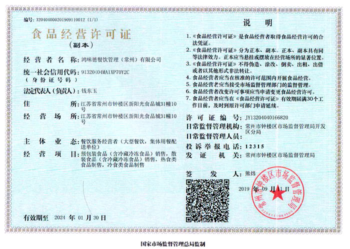 鴻味德餐飲管理(常州)有限公司是一家專門為企業(yè)單位、學(xué)校、醫(yī)院等提供伙食服務(wù)的企業(yè),以飯?zhí)玫某邪、蔬菜、糧油配送為核心業(yè)務(wù),本單位管理規(guī)范化、專業(yè)化,實(shí)現(xiàn)管理嚴(yán)明,有較高的員工素質(zhì),不斷為消費(fèi)者創(chuàng)造更好的生活質(zhì)量。為了維護(hù)自身的品質(zhì)形象,我們已制定了一套完善的經(jīng)營方式和管理制度:為健康、綠色生活提供保障!您的滿意是我們的目標(biāo),我們將竭誠為您提供更好的品質(zhì)、更優(yōu)惠的價格、以及更優(yōu)質(zhì)的服務(wù)。