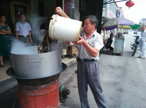 常州新北區(qū)孟河公陽小吃店從事鱔絲面23年,經(jīng)營面積100平方米,黃鱔全是野生,面湯采用高湯制作(鱔魚湯),下面的時候先用開水把黃鱔燙熟,然后用竹刀批下二條黃鱔肉,除去骨頭肚腸,切成段后入油鍋里炸酥,再用白湯烹制成為面澆頭。而面湯是用鱔魚骨頭、豬骨等用大鍋猛火煮上三、四個鐘頭,成為一鍋濃濃的白湯,再進(jìn)行調(diào)味,吃到嘴里全身舒坦。