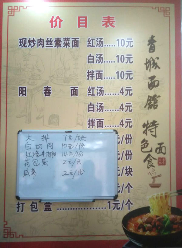 武進(jìn)區(qū)青城面館經(jīng)營面積280平方米左右,主要特色是現(xiàn)炒肉絲,素菜蓋澆面,面館創(chuàng)始人今年63歲的王蘭珍,她對(duì)美食有著高于常人的悟性。她開過饅頭店,開過小飯館,承包過食堂,燒菜、取料樣樣在行,吃過的人常常贊不絕口。 20世紀(jì)初,在跟德興面館的老師傅學(xué)了做面手藝后,王蘭珍萌生了開一家面館的想法,除了可以養(yǎng)家糊口,最重要的是想讓更多人嘗嘗自己的手藝。于是,她在自己的住處擺起了幾張桌椅,面館就算正式營業(yè)了。因?yàn)榧易∏喑菢,王蘭珍干脆取名“青城面館”。 “從早上5點(diǎn)多開始營業(yè),到下午1點(diǎn)多打烊,一天至少要賣掉300多碗面,用掉近160斤面粉!睘楹吻喑敲骛^的面條如此受歡迎,兒媳婦陸偉紅說秘訣在于湯頭和澆頭。湯頭分白湯和紅湯,白湯是由10斤豬骨頭熬制而成,湯色清澈而味道濃郁;紅湯以骨頭湯作底湯,加入茴香、甘草、草果等20多種中草藥,以及糖、醬油等調(diào)味品,鮮而不腥,散發(fā)出陣陣香味。 和一般面館事先燒制好澆頭,放在盆里供客人選擇不同,青城面館的澆頭都是一份份現(xiàn)炒的,特別講究食材的新鮮。就拿暢銷的肉絲蔬菜紅湯面來說,要先起猛火,把肉絲、木耳、蘑菇、青菜等食材放一起煸炒至香,然后澆在撈起的面條上。一碗面出來,現(xiàn)炒的澆頭與面條融合,味道香郁至極。 遙觀人的早晨,醒得有些早。對(duì)很多遙觀人來說,美好的一天是從青城面館開始的。那一碗碗現(xiàn)炒的蓋澆面,筋道爽滑、醬香味濃,溫存著他們的胃與記憶,帶來刻進(jìn)骨子里的家鄉(xiāng)味道。