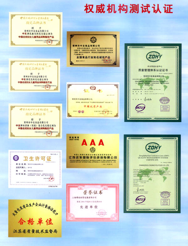 常州市中友食品有限公司;匚挥诔V菔袞|郊開發(fā)區(qū),廠房占地面積6000平方米,擁有全新的生產線,先進的生產流程和嚴格的質量管理體系(工廠已通過IS09001:2000質量管理體系的認證)。并有專業(yè)的技術開發(fā)和理化檢驗的設施、經驗豐富的技術人員。公司以科技為依托,常年與高等院校合作,不斷地開發(fā)和研制適合市場需求的食品添加劑系列產品。公司每年面向全國招收優(yōu)秀的博士、碩士及優(yōu)秀的大學生。公司現有員工1 00多人,管理人員2 0名、高工5名、產品專業(yè)技術開發(fā)人員12名,還有選擇地引進和代理國內外各種適用的食品添加劑。 依靠本公司雄厚的科技力量和先進的科技設備,生產基地已經具備了與客戶共同開發(fā)國內外先進食品添加劑的應用技術。博適中友公司多年來致力于食品添加劑的研究和開發(fā),突破常規(guī)理念,以市場、用戶為中心,研究開發(fā)各個品種、各個檔次的食品添加劑,品種齊全又多樣,既有出口型又有內銷型。公司主要穩(wěn)定劑產品有:乳飲料乳化穩(wěn)定劑、乳酸飲料乳化穩(wěn)定劑、冰淇淋(雪糕)復合乳化穩(wěn)定劑、果汁飲料乳化穩(wěn)定劑等,產品暢銷國內外,覆蓋了全國二十多個省市,并建立了穩(wěn)定的銷售網絡。 本公司對產品指定了嚴格的質量標準,并報請常州市技術檢驗監(jiān)督局審核批準,其技術要求完全符合GB一2760(食品添加劑使用衛(wèi)生標準)和符合聯合國直接衛(wèi)生組織(WHO)、聯合國食品與農業(yè)組織(FAO)以及美國食品和藥物管理局的有關規(guī)定。 長期以來,博適中友公司以市場定位為基本依據,堅持發(fā)展并開辟多元化的國內外市場:以專業(yè)化、長遠化、規(guī)模化為經營思路:以開拓創(chuàng)新,務實誠信為經營理念,不斷促進企業(yè)發(fā)展壯大。 公司自創(chuàng)建以來,始終不渝地堅持質量第一、信譽至上,以精湛的工藝加工產品,不管是標準的或特制的都可享有本公司優(yōu)良的技術服務。無論您需要何種功能性添加劑,博適中友食品添加劑公司均能滿足您的要求。博適中友公司以價格合理、服務周到為經營宗旨,努力引導食品添加劑應用發(fā)展的新潮流、新方向。在才能卓越的領導者的帶領下,全體員工以開拓、創(chuàng)新、求實、守信為企業(yè)精神,不斷地提高自身的素質。 公司的宗旨是“開拓創(chuàng)新發(fā)展、精誠服務和諧”為目標,熱忱與各界有識之士攜手共進,共創(chuàng)輝煌!如今公司業(yè)務蒸蒸日上,專業(yè)技術研究越走越精,這都與廣大客戶大力支持分不開。在新世紀來臨之際,上海博適中友公司愿與您真誠合作,攜手并進,共鑄新的輝煌!