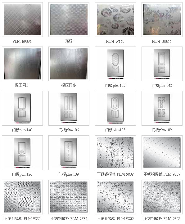 我公司是一家專業(yè)研發(fā)、制造不銹鋼模板、電梯裝潢板等產(chǎn)品的廠家,產(chǎn)品主要適用于壓制三聚氰胺貼板、強(qiáng)化復(fù)合地板、膠合板、PVC板等。 公司主要產(chǎn)品有鏡面、亞光、麻面、浮雕、水晶面、木紋、布紋、皮紋、石紋、瓦楞紋等常規(guī)類不銹鋼模板和裝飾板,以及V型槽、R型槽、波浪紋、手抓紋、仿真對(duì)紋等高檔復(fù)合地板專用模板。本公司堅(jiān)持以最優(yōu)質(zhì)的選材,最精湛的工藝,最先進(jìn)的技術(shù)用心打造每一款產(chǎn)品,使之藝術(shù)感與實(shí)用性并存,充滿著生機(jī)與活力,為客戶提供更多更理想的選擇。公司最新推出模壓門專用模板,可壓制各種三聚氰胺貼面門皮,為浙江永康門都以及全國(guó)各大門廠提供優(yōu)質(zhì)服務(wù)。