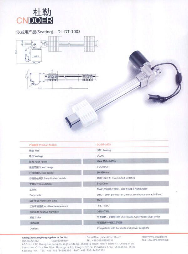 常州登豐電氣有限公司位于人杰地靈的江南古城—常州武進(jìn)區(qū)鄭陸鎮(zhèn)東青。緊臨常州火車站、滬寧高速公路、312國(guó)道、長(zhǎng)江港等,交通十分便捷。 公司最早創(chuàng)辦于1989年,歷經(jīng)20多年的艱苦創(chuàng)業(yè),本著“誠信為本、品質(zhì)至上”的經(jīng)營(yíng)理念,公司生產(chǎn)的“武微”牌空調(diào)電機(jī)、“蘇杰”牌電動(dòng)車電機(jī)和采用國(guó)外先進(jìn)技術(shù)制作的動(dòng)力強(qiáng)勁、同時(shí)具有過載保護(hù)和消音裝置的綠色環(huán)保產(chǎn)品:“登豐”、“聚美”牌食物垃圾處理器。這些產(chǎn)品在全國(guó)各地市場(chǎng)均享有較高的知名度。 如今,公司為謀求新的發(fā)展,立足于國(guó)內(nèi),放眼于國(guó)際市場(chǎng),投入了大量的人力、財(cái)力、物力,購置了先進(jìn)的全自動(dòng)生產(chǎn)流水線、全自動(dòng)繞線機(jī)和各類精密的測(cè)試儀器,多功能隔音房等設(shè)施,全新推出了具有美好前景和廣闊市場(chǎng)的主打產(chǎn)品:“杜勒”牌系列線性推桿及各類配套電機(jī)。該產(chǎn)品已通過ISO9001認(rèn)證,產(chǎn)品外觀新穎、制作精良、噪音小、操作靈活簡(jiǎn)便,暢銷國(guó)內(nèi),遠(yuǎn)銷國(guó)外,被廣泛應(yīng)用于電動(dòng)沙發(fā)、醫(yī)療護(hù)理床、手術(shù)床、按摩椅等眾多領(lǐng)域!岸爬铡碑a(chǎn)品已被越來越多的客戶所青睞和認(rèn)可! 公司竭誠歡迎各界朋友、新老客戶前來洽談合作,共謀發(fā)展。我們也將不斷開拓創(chuàng)新,提高產(chǎn)品質(zhì)量,完善售后服務(wù)體系,努力打造成為行業(yè)先鋒企業(yè)!