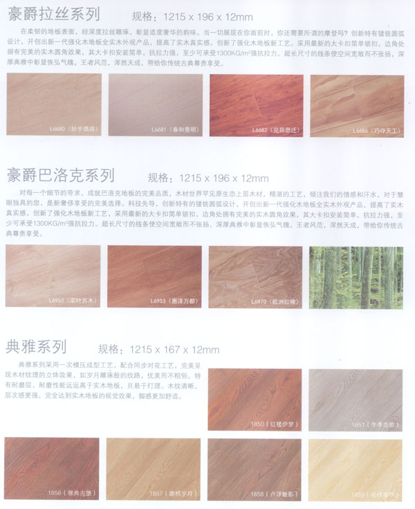 公司生產(chǎn)的地板所選用的材料均為進(jìn)口或國(guó)內(nèi)上等材料。嚴(yán)格的入廠檢驗(yàn),不使任何不合格的原材料流入生產(chǎn)環(huán)節(jié),優(yōu)異的生產(chǎn)加工工藝使原材料和精良設(shè)備的優(yōu)勢(shì)發(fā)揮至及致;嚴(yán)格的質(zhì)量管理體系更使每一流轉(zhuǎn)環(huán)節(jié)的產(chǎn)品品質(zhì)一流。每塊出廠的地板都符合比國(guó)標(biāo)更嚴(yán)格品質(zhì)標(biāo)準(zhǔn)。