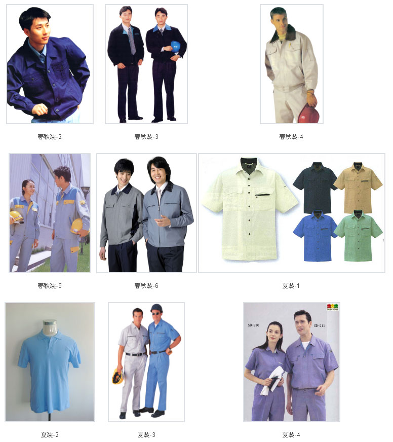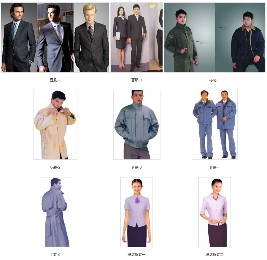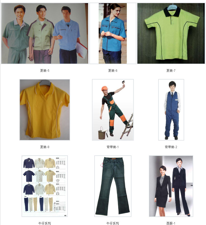 目前本公司專業(yè)生產(chǎn)的品種主要有:工作服裝、牛仔工作服、西服、酒店賓館(餐飲)服裝、校服、醫(yī)務(wù)、保安、美容、美發(fā)、按摩、超市團(tuán)體服裝等。