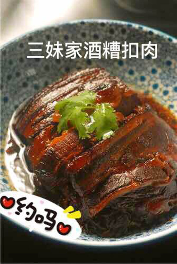 橫林有個地兒叫楊歧村,有句老話叫“上不靠橫林,下不靠洛社”,說的就是那里。 楊歧村過去幾十米就是無錫地界,今天小編推薦的土菜館「三妹農(nóng)家小吃」就在那里。 當(dāng)小編一路七拐八拐,中午11點(diǎn)半到達(dá)那里時(shí),門面雖然很簡陋,但店門口已然停了好多輛車。剛進(jìn)入店門,就發(fā)現(xiàn)這家店人氣好旺,十幾桌基本都坐滿了。(所以說,人不可貌相,餐館也是如此) "三妹,三妹。⒌昀锟腿私袉韭暡唤^于耳,原來老板娘叫楊三妹啊。你們忙,我們先隨便看看。 過大廳到后堂就是冷菜間,里面有白切草雞、鹵豬干、拌馬蘭等十幾種土菜,尤其那草雞濃郁的香味,讓小編肚子叫得咕咕響。 往前是活貨區(qū),各種鮮魚活蝦一格一格區(qū)分養(yǎng)著,再里面是開放式廚房,每個客人都可以看到,選用的放心食材和調(diào)料。  吃貨老板娘,楊三妹,三妹,從小到大一直有個嗜好,就是愛美味,不光喜歡吃,還喜歡鉆研做。2010年,「三妹小吃」開張,因?yàn)楠?dú)具特色,在楊歧這個小村一炮而紅。要說楊三妹最拿手的菜是什么,當(dāng)然是酒糟扣肉。 糟本來就是一種做米酒留下來后,用來吊燒酒的。但是我們常州人很聰明,把糟和肉放在一起,做成一道美味菜,叫酒糟扣肉。 楊三妹的酒糟扣肉之所以有名,得益于母親的悉心傳授。記憶里小辰光,她母親做的扣肉總比別人家的香!冈恪,釀完酒后留下的糟,會與炒熟的新糯米,拌和在一起,陳一年!溉狻,選擇本地養(yǎng)殖的良種豬,沒有臊味。 長大后,她把記憶里的美味延續(xù)了下來。精益求精的她,對扣肉的制作過程要求很嚴(yán)格。別人家制作都是把肉直接切大塊,排碗,熬槽,蒸爛。三妹說,這樣烹制,肉汁的鮮美會流失很多,口感減分不少。她的做法是精選新鮮豬五花,整大塊清蒸,保留肉汁的鮮美,之后再切塊紅燒,排碗,熬糟,澆蓋,再蒸。 三妹酒糟扣肉,出鍋后,色澤紅潤,味道鮮美。既有酒的香味,又有肉的鮮美,而且經(jīng)過蒸煮后,油脂都出來了,爽口不油膩。