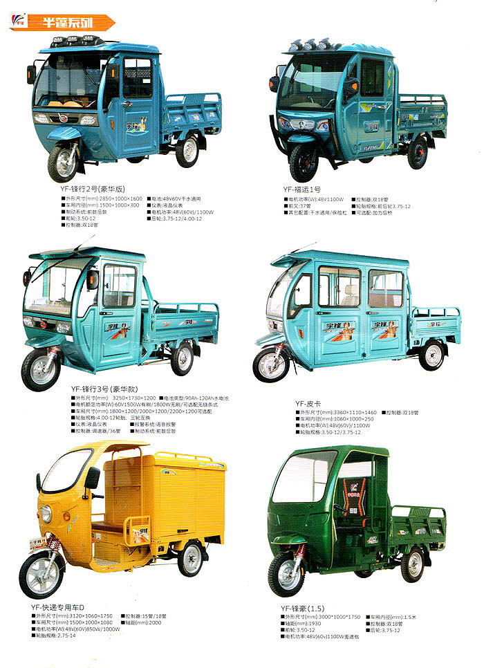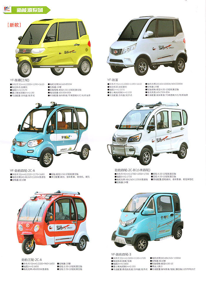 宇鋒產(chǎn)品擁有電動三輪車、新能源車和電動兩輪車等八大系列近百個型號品種,公司堅持自主研發(fā)自主制造,并順利通過ISO9001:2008質(zhì)量管理體系認(rèn)證和ISO14001:2004國際環(huán)境管理體系認(rèn)證。