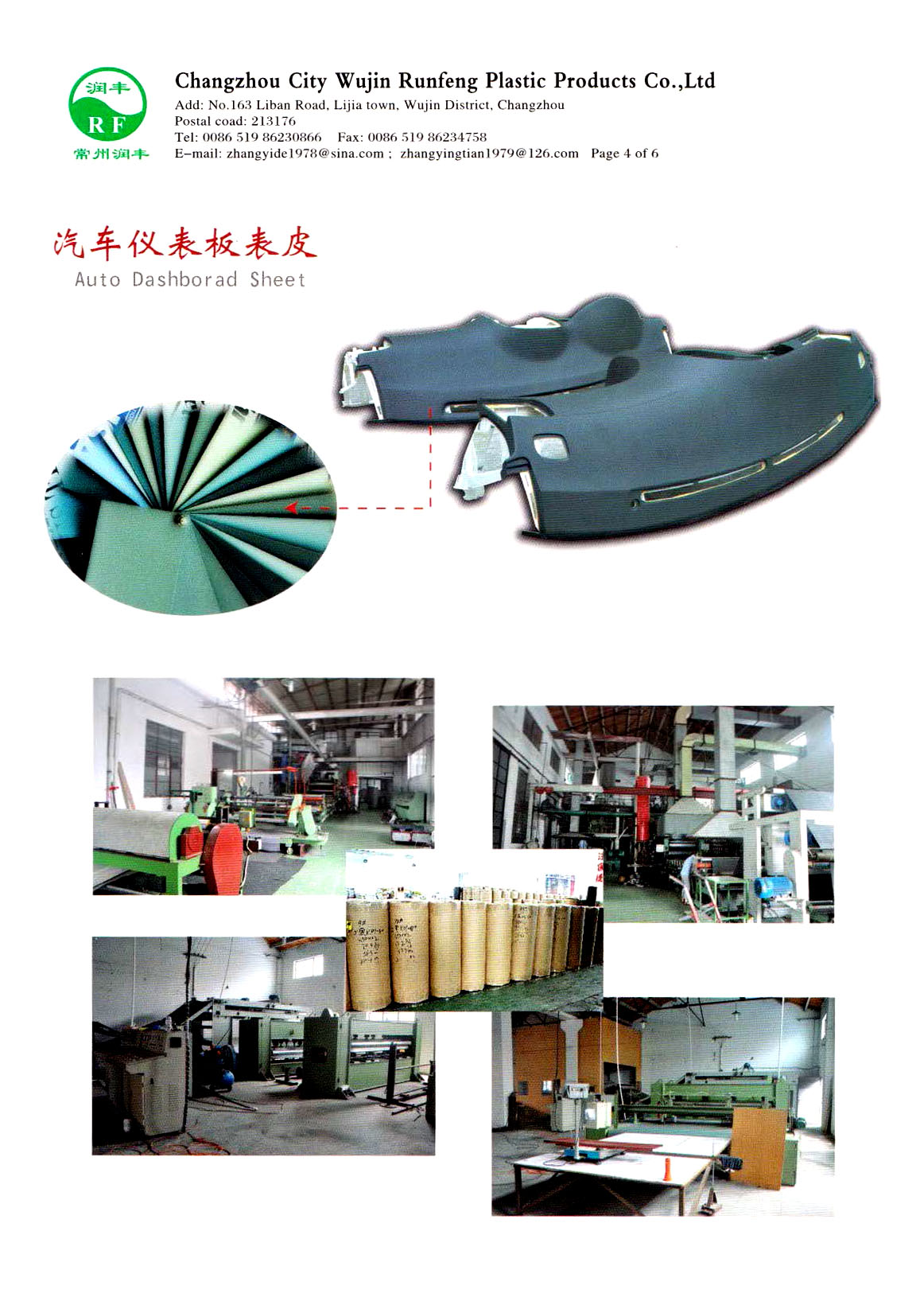 常州市武進(jìn)潤(rùn)豐塑料制品有限公司地處風(fēng)景美麗經(jīng)濟(jì)發(fā)達(dá)的長(zhǎng)江三角洲常州市東郊禮嘉鎮(zhèn),公司占地面積約8000平方米,且地理位置優(yōu)越,是中外客商常涉之地。 本公司專(zhuān)業(yè)生產(chǎn)汽車(chē)儀板軟化表皮、PVC門(mén)護(hù)板表皮、PVC復(fù)合制品、壓延薄膜制品,(塑料制品除醫(yī)用塑料制品),車(chē)輛零部件,機(jī)械電器零部件,電子元件,沖壓件制造,加工無(wú)妨制品,玻纖氈(GFP板),麻氈板等。本公司的產(chǎn)品在國(guó)內(nèi)一線(xiàn)乘用車(chē)上廣泛使用。產(chǎn)品通過(guò)國(guó)家汽車(chē)質(zhì)量監(jiān)督檢驗(yàn)中心檢測(cè),并取得了各種證書(shū),如亞瑟國(guó)際認(rèn)證;ISO/TS1694:2009等。 本公司技術(shù)力量雄厚,生產(chǎn)設(shè)備先進(jìn)。多年來(lái),建立了較完善的質(zhì)量管理體系,以先進(jìn)的檢測(cè)技術(shù),優(yōu)質(zhì)的服務(wù)態(tài)度,向客戶(hù)提供最優(yōu)秀的產(chǎn)品,在同行中享有良好的聲譽(yù)。 歡迎新老客戶(hù)來(lái)公司指導(dǎo),洽談,合作。