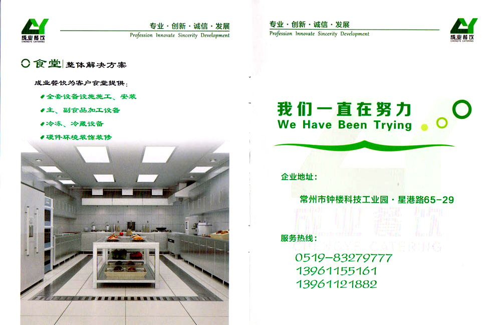 常州市成業(yè)餐飲管理有限公司位于常州市鐘樓區(qū)星港58號(hào),是一家專業(yè)從事中小學(xué)師生營(yíng)養(yǎng)餐制售及配送一體化的企業(yè),自創(chuàng)立以來,始終堅(jiān)持“專業(yè)•創(chuàng)新•誠(chéng)信•發(fā)展”的經(jīng)營(yíng)理念,牢固樹立“消費(fèi)者利益至上”的行業(yè)價(jià)值觀,以“社會(huì)利益和經(jīng)濟(jì)利益共同實(shí)現(xiàn)”為發(fā)展目標(biāo),深入推進(jìn)各項(xiàng)創(chuàng)建工作,積極響應(yīng),工商協(xié)同、培育品牌、信息共享、完善制度、增強(qiáng)能力,從而更好地服務(wù)于在校就餐師生。 公司董事長(zhǎng)陳葉東先生經(jīng)過多年的自主經(jīng)營(yíng)歷程,積累經(jīng)驗(yàn),勇于創(chuàng)新,積極進(jìn)取,于2009年3月籌建創(chuàng)立常州市成業(yè)餐飲管理有限公司,注冊(cè)資金518萬元整,發(fā)展至今,已經(jīng)營(yíng)管理30多家中小學(xué)、企業(yè)食堂,每天為45000多人次提供優(yōu)質(zhì)放心午餐,擁有良好的經(jīng)營(yíng)信譽(yù)和口碑。 為了更好的適應(yīng)常州學(xué)生營(yíng)養(yǎng)餐供給模式,于2015年2月投建2000平方米中心廚房,同年8月正式投入使用,以先進(jìn)的恒溫配送模式滿足校內(nèi)無食堂的學(xué)校供餐需求。2018年5月,鑒于公司發(fā)展需求,重新投建350平方米團(tuán)餐加工及配送中心,8月正式投入生產(chǎn),力求成為常州市一流的學(xué)生營(yíng)養(yǎng)餐配送企業(yè)。 基于常州公司的穩(wěn)步發(fā)展,成業(yè)并沒有滿足現(xiàn)狀,停下腳步。2017年7月以980萬注冊(cè)創(chuàng)建鹽城成業(yè)餐飲管理有限公司,為鹽城阜寧教育體系各單位提供食堂管理及師生團(tuán)膳配送服務(wù)。至2019年3月,日供餐人次已達(dá)21000多人次。 2018年7月,成業(yè)餐飲在鹽城地區(qū)相繼啟動(dòng)濱海和響水兩縣的集體用餐配送及食品原料大宗采購(gòu)項(xiàng)目,當(dāng)?shù)叵嚓P(guān)政府部門對(duì)公司的發(fā)展規(guī)劃及實(shí)施進(jìn)度給予了高度評(píng)價(jià)和支持。