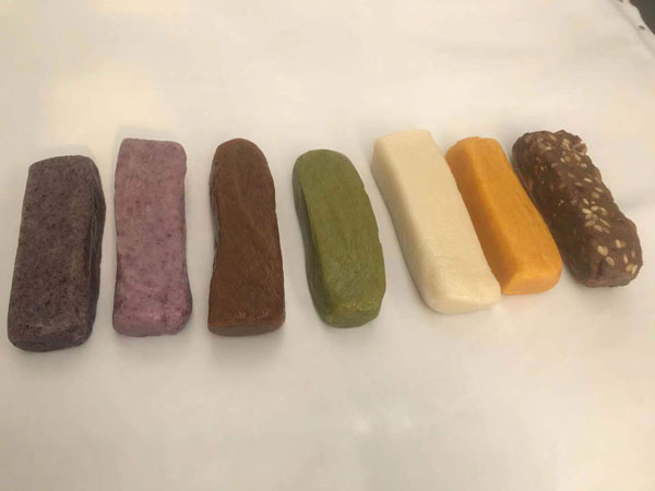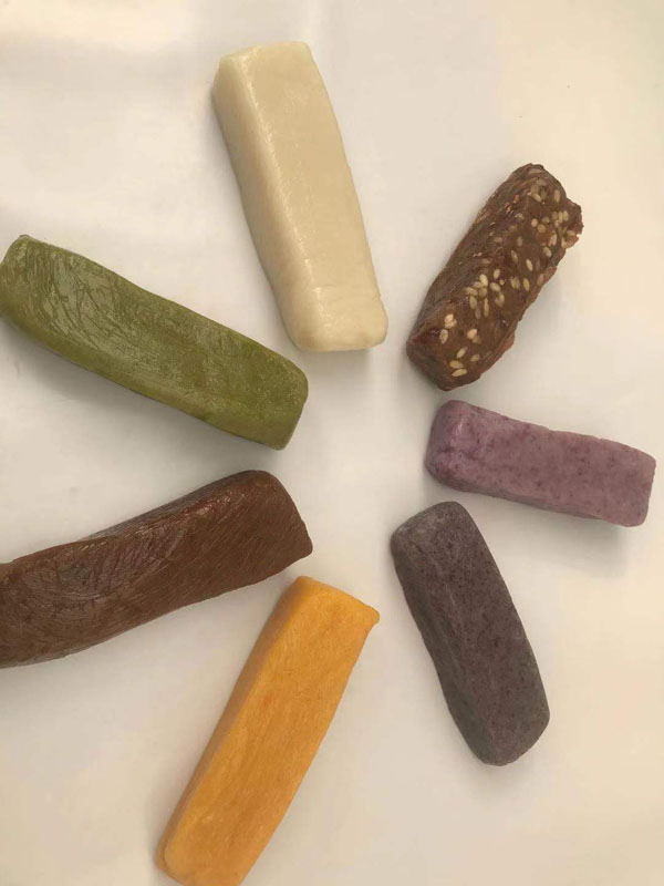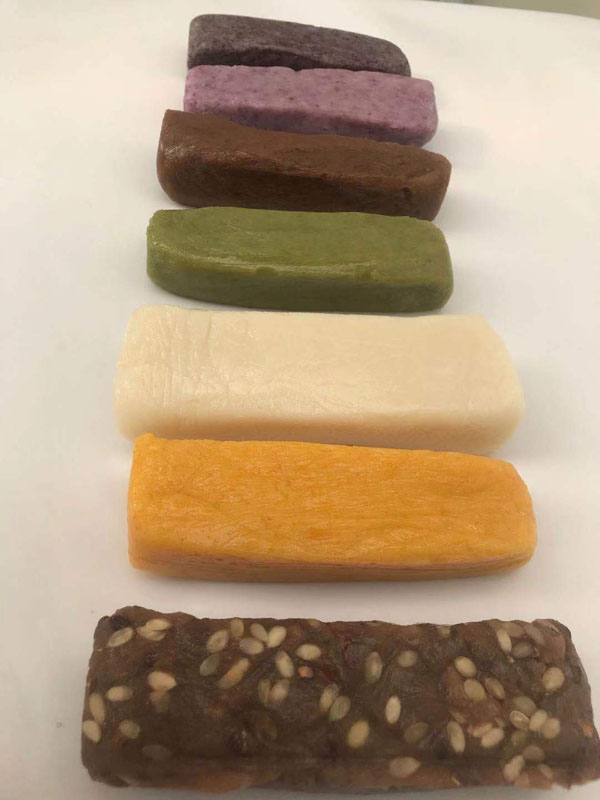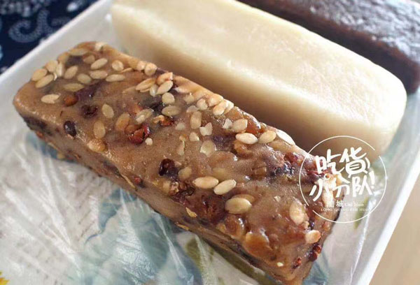 腳踏糕本名“年糕”,按常州周邊地區(qū)的風(fēng)俗習(xí)慣,在春季前夕,各家各戶都要蒸年糕,吃年糕!案狻敝C音“高”,過年吃年糕被賜予“年年高”,一年高一年,鋒吉祥之意,表達(dá)這人們對未來美好生活的憧憬和良好的祝愿。今天小編要帶大家的就是一家至今保持著傳統(tǒng)手工制作的鈺鋒糕點坊。   鈺鋒糕點坊位于常州鄭陸鎮(zhèn)三皇廟范家莊,一個比較偏僻的村莊,雖然這家作坊不大,但香糯絲滑,軟糯適中,韌勁十足的腳踏糕吸引了無數(shù)的食客。制作一條腳踏糕要從淘米,浸泡,碾粉,鋪粉,一層一層的鋪下去,需要無數(shù)道制作工序,這些都是店主孫煥公公老周,憑著幾十年的經(jīng)驗,加上店主孫煥從不馬虎的決心!   這“腳踏”也并非赤腳上陣,而是把蒸好的糕倒入早以準(zhǔn)備好的框子里,用布包裹好,上面再用薄膜包好,再蓋上布,再換上專門腳踏的布鞋,踩的時候要勻稱,左右腳要配合好,不然糕會高高低低,不平整,最后再拿蠟燭線拆成一條小長條,再拿帶包裝好,如此又香又糯的腳踏糕就大功告成了。   店主孫煥為了讓更多的人認(rèn)識和了解常州腳踏糕的傳統(tǒng)文化和美食,她在傳統(tǒng)工藝中增加了適合現(xiàn)代文化的多種口味,她在糕里加入南瓜,紫薯,老紅糖,大麥汁,血糯米,核桃,葡萄干,紅棗等食材,做出五顏六色,純天然的口味,深受食客們的喜愛,不管是送人還是自己吃都非常新穎。
