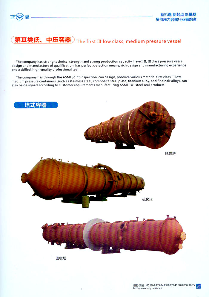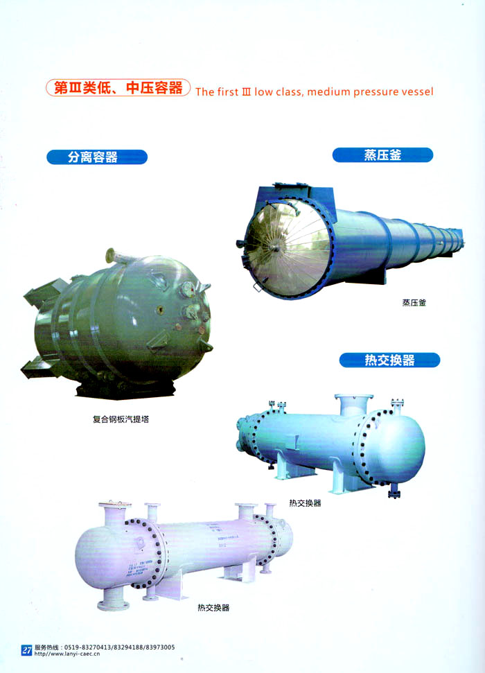 主要產(chǎn)品 中高壓航空滅火瓶、鋼質(zhì)焊接氣瓶、第三類低,中壓力容器、蒸壓釜、換熱器、民用核承壓設(shè)備、5至160立方米各類介質(zhì)貯罐、各種型號罐式集裝箱、生物工程設(shè)備、液化天然氣(LNG)車用氣瓶、液化天然氣(LNG)加氣站、乙炔工程設(shè)備、樹脂生產(chǎn)設(shè)備、核電工程設(shè)備、船舶專用設(shè)備等。