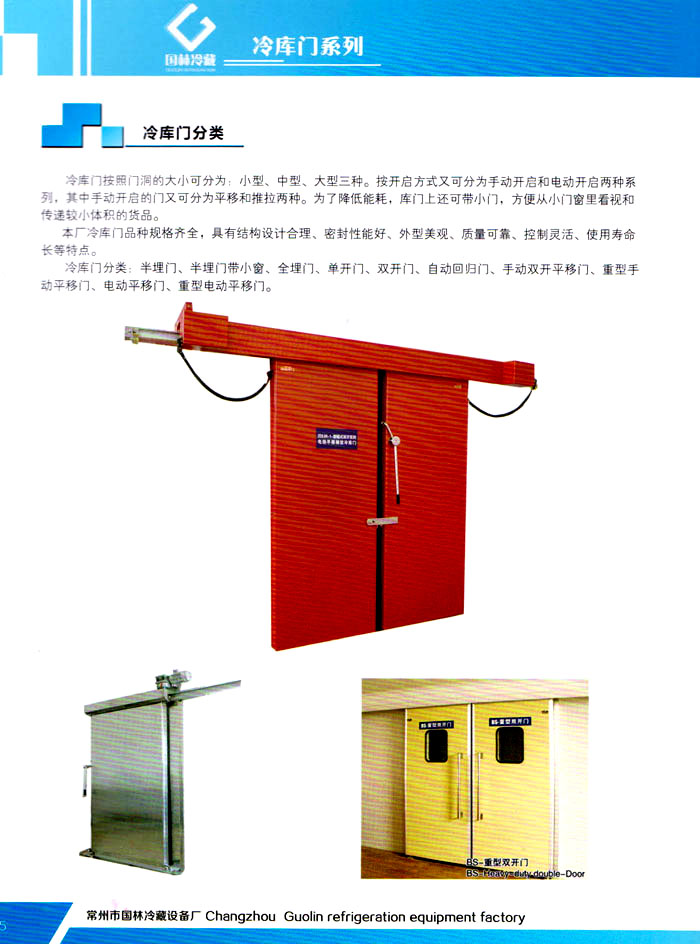 常州市國林冷藏設(shè)備廠(原武進(jìn)長虹冷藏設(shè)備廠)成立于1995年,地處江南水鄉(xiāng)中國富饒的“長江三角洲”中心區(qū)域—江蘇常州,滬寧高速、沿江高速、312國道,交通快捷,即刻到達(dá)。 國林冷庫:公司通過了ISO9001:2000質(zhì)量體系認(rèn)證,國林冷庫多次獲得“江蘇省優(yōu)質(zhì)產(chǎn)品”稱號(hào),全國質(zhì)量服務(wù)AAAAA示范單位,并且是中國食品網(wǎng)、阿里巴巴,空調(diào)制冷誠信通會(huì)員企業(yè),并與全國多家設(shè)計(jì)院技術(shù)合作,本廠的誠信服務(wù)獲得了廣大客戶的認(rèn)可。 國林冷庫:中國制冷行業(yè)的十大冷庫制造商之一,中國制冷重要工業(yè)生產(chǎn)基地。本公司***生產(chǎn)保溫庫板及冷庫制冷成套設(shè)備,庫板材料涉及不銹鋼、彩鋼板、玻璃鋼板、保溫聚氨脂板。年產(chǎn)量3000多臺(tái),庫板30多萬平方,歡迎新好客戶前來訂購。 國林制冷:公司始終堅(jiān)持:“質(zhì)量為上,追求品質(zhì)”的生產(chǎn)方針;始終信奉:“客戶為先,服務(wù)為本”的經(jīng)營理念。我們?cè)竿瑥V大的新老客戶在新的世紀(jì)里,共同發(fā)展,利益雙贏,再創(chuàng)輝煌。 常州市國林冷藏設(shè)備廠***生產(chǎn)7.5公分,10公分,12公分,15公分,20公分的聚氨酯冷庫板,面板包括彩鋼板、不銹鋼板、壓花鋁板等各種板材,各種冷庫半埋門及平移動(dòng)門,各種鐵排管和鋁排管,價(jià)格優(yōu)惠,有需要的可以聯(lián)系我金文燁18761183807