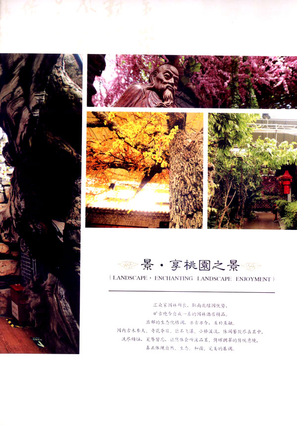 淹城花都溫泉水城孕育天地之精華,悅身、悅?cè)、悅心、悅神。置身其中泉水潺潺,霧氣繚繞、花瓣飄香,恍若仙境!稗渌略谑郑ㄏ銤M衣”,花都溫泉的浪漫與溫潤在這里完美展現(xiàn)。 花都溫泉水城包括洗浴區(qū)、戲水世界、露天溫泉、自助餐廳、生態(tài)房、別墅區(qū)、紅文化房、VIP區(qū)等多種功能區(qū)域,是集溫泉養(yǎng)生、休閑住宿、演藝會務(wù)為—體的休閑度假勝地,給賓客帶來江南小鎮(zhèn)的浪漫水城之旅。 古木新枝畔賓客對酒當(dāng)歌,溪泉石椅旁把茶品啜。 淹城-三勤生態(tài)酒店,這里是一處綠色生態(tài)的美食家園。此地鬼斧神工.奇水異石,和風(fēng)細(xì)雨林中穿過,引百鳥朝來暮歌;這里集生態(tài)餐飲、演藝、中小型會務(wù)為一體,將現(xiàn)代裝飾風(fēng)格和古雅拙樸的自然裝修完美整合;這里聚集大江南北名廚,推出精致綠色美昧佳肴。來到這里,賓客可享田園至美之景,品舌尖至鮮之味,實乃人生一大樂事。