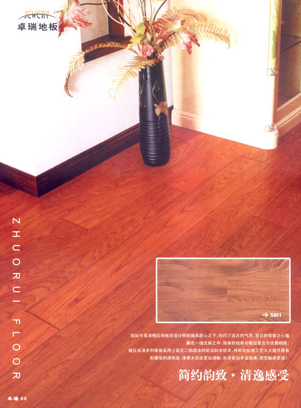 常州市卓瑞裝飾材料有限公司創(chuàng)建于一九九二年,公司位于中國江蘇省常州市,北靠滬寧高速公路,南臨滬寧鐵路,東臨無錫,環(huán)境優(yōu)越。 公司占地35畝,生產(chǎn)廠房2萬多平方米,擁有多條先進的復(fù)合地板生產(chǎn)線。公司引進先進設(shè)備和技術(shù)研制而成的高耐磨環(huán)保復(fù)合地板。一流的生產(chǎn)設(shè)備,加上嚴格的操作流程,精細的加工工藝,嫻熟專業(yè)的技術(shù),是泰格龍地板脫穎而出,泰格龍以大眾健康為己任,務(wù)求每一塊泰格龍地板都是健康產(chǎn)品,都是科技、自然、藝術(shù)、生活的精彩結(jié)合。 產(chǎn)品通過ISO9001國際質(zhì)量體系認證和ISO14001國際環(huán)境質(zhì)量體系認證。目前產(chǎn)品主要出口美國、英國、德國、澳大利亞、馬來西亞、烏克蘭、菲律賓、加拿大、智利、土耳其等十多個國家和地區(qū)。 未來,本公司上下將一如既往,堅持“質(zhì)量第一,顧客之上”的原則,以高質(zhì)量的產(chǎn)品,優(yōu)良的服務(wù),歡迎各界朋友蒞臨指導(dǎo),共同開拓美好前景!