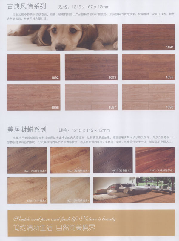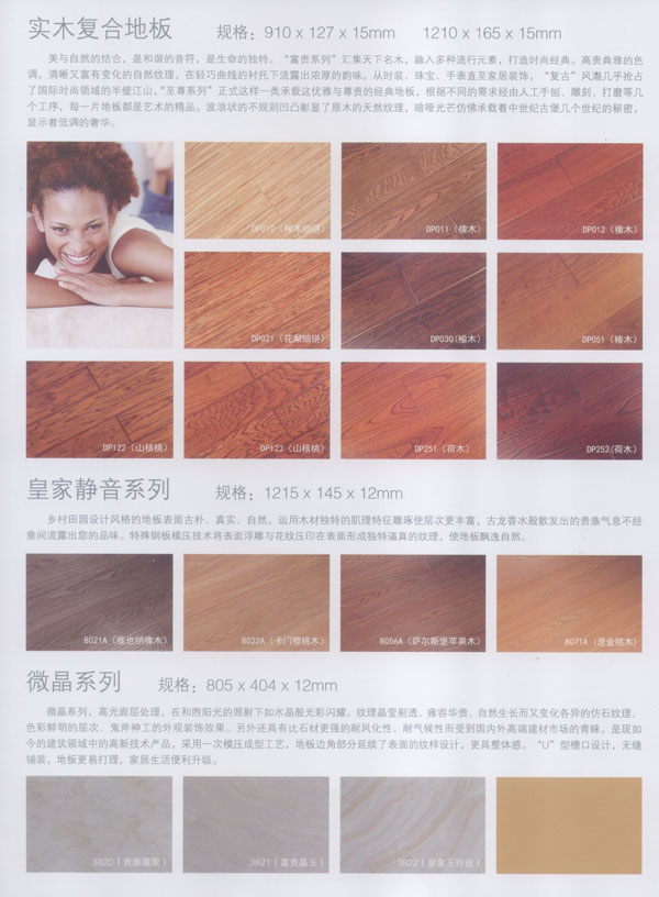 公司生產(chǎn)的地板所選用的材料均為進口或國內(nèi)上等材料。嚴格的入廠檢驗,不使任何不合格的原材料流入生產(chǎn)環(huán)節(jié),優(yōu)異的生產(chǎn)加工工藝使原材料和精良設(shè)備的優(yōu)勢發(fā)揮至及致;嚴格的質(zhì)量管理體系更使每一流轉(zhuǎn)環(huán)節(jié)的產(chǎn)品品質(zhì)一流。每塊出廠的地板都符合比國標更嚴格品質(zhì)標準。