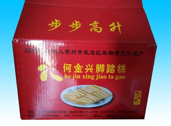 常州鄭陸何金興腳踏糕制作坊從事腳踏糕制作工藝200多年,五代傳承,制作面積300平方米左右,腳踏糕是用黏性大的米或米粉蒸成的糕,是中國(guó)農(nóng)歷年的應(yīng)時(shí)食品。春節(jié),我國(guó)很多地區(qū)都有講究吃年糕。年糕有紅、黃、白三色,象征金銀,年糕又稱“年年糕”,與“年年高”諧音,寓意著人們的工作和生活一年比一年提高。所以前人有詩(shī)稱年糕:“年糕寓意稍云深,白色如銀黃色如金。年歲盼高時(shí)時(shí)利,虔誠(chéng)默祝望財(cái)臨!绷碛姓憬幉ㄊ薪眳^(qū)慈城鎮(zhèn)的水磨年糕也是特別有名。
