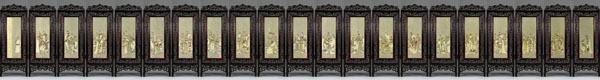 4 牙刻《三國演義圖》,作者懷著對牙刻藝術(shù)的鐘愛,對中華古老文化之敬仰,肩負時代之重托,賦予作者堅韌不撥的決心和毅力。牙刻《三國演義》創(chuàng)作靈感被點燃,博大、深遂、精致而具有鮮明文化特質(zhì)的牙刻作品自然天成,得以成就夢寐以求的作品。由微雕63萬余漢字《三國演義》全文作為灰色背景,105枚金石名章烘托出《三國演義》名著中各領(lǐng)風(fēng)騷、形象鮮明的126個主要人物。由21扇牙刻紫檀組合成3.28米長的巨型屏風(fēng),寓意著對美好21世紀的憧憬。小牙刻大題材、大系列、大氣魄、大氣象,最終產(chǎn)生巨大的震撼力。牙刻《三國演義》如此恢弘絕無僅有、前無古人。從表象看牙刻與微雕的融合、書法金石與人物的呼應(yīng)、灰色背景與墨彩的烘托,精雕紫檀與微雕牙刻的對照,而深層次看這些都是繪畫語言在牙刻藝術(shù)中的完美體現(xiàn),也突破了千余年來固守線刻傳統(tǒng)的窠臼,提升了當(dāng)今牙刻藝術(shù)的品位并注入新的活力,將牙刻從藝人勞動升華為藝術(shù)家從事的創(chuàng)作。這件作品是我歷時五年于2001年10月雕刻而成,一經(jīng)展出引起了工藝美術(shù)界高度關(guān)注,獲得了首屆中國華東工藝美術(shù)精品展金獎、第三屆國家級工藝美術(shù)大師精品展金獎、首屆中國工藝美術(shù)學(xué)會最高學(xué)術(shù)獎“華藝杯”金獎。