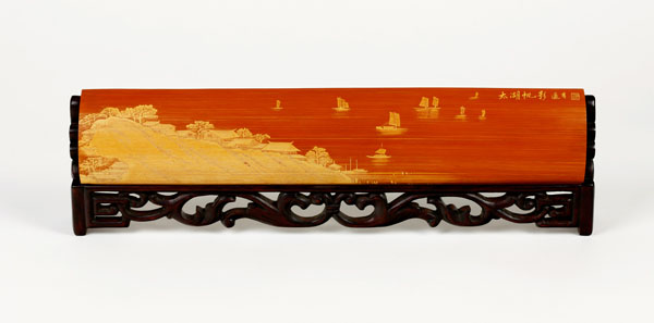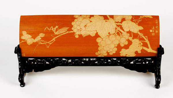 徐敏,一九七四年生于江蘇常州,擅長山水油畫。師從竹刻家范遙青研習(xí)竹刻至今有二十余載。其作品受到竹刻權(quán)威鑒賞家王世襄認(rèn)可,并親筆為她題字褒獎(jiǎng),F(xiàn)為常州市非物質(zhì)文化遺產(chǎn)傳承人。