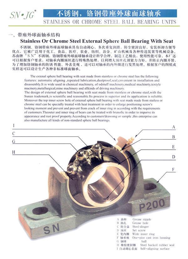 常州市武進蘇南軸承有限公司是生產(chǎn)鋼球及帶座外球面軸承的專業(yè)工廠,主要生產(chǎn)蘇南牌“SN”不銹鋼球、鉻鋼鋼球,以及不銹鋼、鉻鋼UC、UCX、UK、HC、SB、SA、SER、UOOO、KOOO及其它非標系列各類帶座外球面軸承、偏心套、緊定套等產(chǎn)品。本廠生產(chǎn)規(guī)格有軸承鋼球0.5-150m/m,碳鋼球0.5-150m/m,不銹鋼球0.8-50m/m,同時定做各種特殊規(guī)格的不銹鋼球、銅球、陶瓷球等。為廣大用戶提供品質優(yōu)良,規(guī)格齊全,價格合理的各種鋼球。 本公司位于常州南部,錫宜高速公路串境而過, 交通便利。南瀕風景秀麗的太湖,沿湖丘陵地帶人文景觀豐富,為常州市武進區(qū)太湖旅游度假區(qū) 。本廠環(huán)境優(yōu)美,具有良好的生產(chǎn)環(huán)境,我們竭誠歡迎國內外的朋友進行廣泛多樣的經(jīng)濟合作交往和貿易合作,并為你提供優(yōu)良的服務。 本公司技術力量雄厚,工藝裝備先進,檢測手段完備,產(chǎn)品質量穩(wěn)定,使用性能各項指標都達到國際先進水平,產(chǎn)品主要銷往美國、法國、德國、日本、意大利、澳大利亞、韓國、加拿大、及東南亞等國家和地區(qū)。本公司的“SN”商標鋼球及帶座外球面軸承已贏得國內外廣大用戶的信賴。 本公司具有外貿自營出口權,并于2002年9月通過ISO9001-2000版質量體系認證,于2004年8月通過“CQC”產(chǎn)品質量認證。