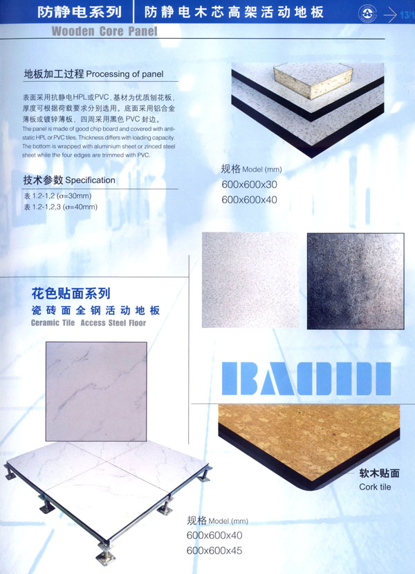 常州市寶進(jìn)防靜電設(shè)備有限公司是各類防靜電產(chǎn)品開發(fā)、設(shè)計(jì)、制造、安裝服務(wù)于一體的企業(yè)。以上海物理學(xué)會(huì)空間靜電專業(yè)委員會(huì)強(qiáng)大的技術(shù)力量為后盾。公司主要致力于各類機(jī)房、電氣室設(shè)計(jì)、安裝;各類防靜電干擾處理及用戶特種需求。公司擁有防空間靜電干擾—聲學(xué)復(fù)合系統(tǒng)、輕質(zhì)全鋼活動(dòng)地板、高環(huán)保型抗靜電貼面等多項(xiàng)發(fā)明專利,是國(guó)內(nèi)該行業(yè)中唯一擁有自主知識(shí)產(chǎn)權(quán)的企業(yè)。 公司主要產(chǎn)品“寶迪”牌 防靜電高架地板及板材、OA網(wǎng)絡(luò)地板。產(chǎn)品廣泛用于電子廠房、金融系統(tǒng)、電力、廣電、軍隊(duì)及智能化樓宇。并向多個(gè)國(guó)家出口。 針對(duì)發(fā)泡水泥填充的全鋼高架地板自身重、承載差的缺點(diǎn),我們開發(fā)了輕質(zhì)全鋼高架地板。在提前地板承載的同時(shí),大幅減輕了地板的自重。 公司一貫嚴(yán)格執(zhí)行ISO9001-2000質(zhì)量保證體系,為用戶提供高品質(zhì)的產(chǎn)品及完善的售后服務(wù)是公司一貫的宗旨。