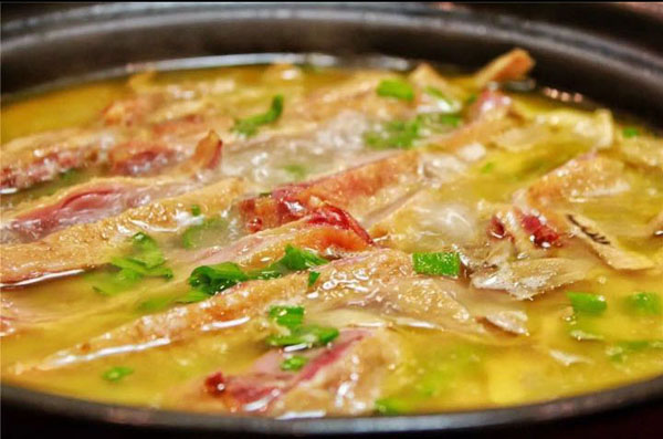 橫林有個地兒叫楊歧村,有句老話叫“上不靠橫林,下不靠洛社”,說的就是那里。 楊歧村過去幾十米就是無錫地界,今天小編推薦的土菜館「三妹農(nóng)家小吃」就在那里。 當(dāng)小編一路七拐八拐,中午11點半到達(dá)那里時,門面雖然很簡陋,但店門口已然停了好多輛車。剛進入店門,就發(fā)現(xiàn)這家店人氣好旺,十幾桌基本都坐滿了。(所以說,人不可貌相,餐館也是如此) "三妹,三妹!"店里客人叫喚聲不絕于耳,原來老板娘叫楊三妹啊。你們忙,我們先隨便看看。 過大廳到后堂就是冷菜間,里面有白切草雞、鹵豬干、拌馬蘭等十幾種土菜,尤其那草雞濃郁的香味,讓小編肚子叫得咕咕響。 往前是活貨區(qū),各種鮮魚活蝦一格一格區(qū)分養(yǎng)著,再里面是開放式廚房,每個客人都可以看到,選用的放心食材和調(diào)料。  吃貨老板娘,楊三妹,三妹,從小到大一直有個嗜好,就是愛美味,不光喜歡吃,還喜歡鉆研做。2010年,「三妹小吃」開張,因為獨具特色,在楊歧這個小村一炮而紅。要說楊三妹最拿手的菜是什么,當(dāng)然是酒糟扣肉。 糟本來就是一種做米酒留下來后,用來吊燒酒的。但是我們常州人很聰明,把糟和肉放在一起,做成一道美味菜,叫酒糟扣肉。 楊三妹的酒糟扣肉之所以有名,得益于母親的悉心傳授。記憶里小辰光,她母親做的扣肉總比別人家的香!冈恪,釀完酒后留下的糟,會與炒熟的新糯米,拌和在一起,陳一年!溉狻,選擇本地養(yǎng)殖的良種豬,沒有臊味。 長大后,她把記憶里的美味延續(xù)了下來。精益求精的她,對扣肉的制作過程要求很嚴(yán)格。別人家制作都是把肉直接切大塊,排碗,熬槽,蒸爛。三妹說,這樣烹制,肉汁的鮮美會流失很多,口感減分不少。她的做法是精選新鮮豬五花,整大塊清蒸,保留肉汁的鮮美,之后再切塊紅燒,排碗,熬糟,澆蓋,再蒸。 三妹酒糟扣肉,出鍋后,色澤紅潤,味道鮮美。既有酒的香味,又有肉的鮮美,而且經(jīng)過蒸煮后,油脂都出來了,爽口不油膩。
