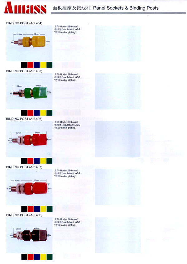 本公司專業(yè)生產(chǎn)各類香蕉插頭,香蕉插座,接線柱,電瓶夾,鱷魚夾,測試導(dǎo)線,測試筆等。產(chǎn)品分2mm/2.5mm/3mm/3.5mm/4mm五大系列,百余種款式, 各種香蕉插廣泛用于儀器、儀表、電力測試、教學(xué)、玩具,視聽設(shè)備、醫(yī)療儀器,保健產(chǎn)品等領(lǐng)域。公司技術(shù)力量雄厚,生產(chǎn)工藝先進(jìn),產(chǎn)品遠(yuǎn)銷港、臺、歐美,并與飛利浦等國際品牌配套。公司本著精益求精的理念,歡迎新老客戶光臨。 我們擁有資深的工程師和豐富的電子產(chǎn)品銷售經(jīng)驗,專業(yè)生產(chǎn)各類電子接插件產(chǎn)品。 香蕉插頭,香蕉插座,電瓶夾,鱷魚夾等品種齊全、 質(zhì)量可靠,致力服務(wù)于通訊、數(shù)據(jù)通信、消費(fèi)類電子產(chǎn)品、計算機(jī)和計算機(jī)外圍設(shè)備以及工業(yè)應(yīng)用等領(lǐng)域,能給客戶提供全面采購解決方案。 我們秉承穩(wěn)健作風(fēng)、誠實(shí)經(jīng)營、合理價格、完善服務(wù)的宗旨,在全體客戶的支持下,公司不斷創(chuàng)新進(jìn)取,業(yè)績蒸蒸日上,已與數(shù)十家電子零件制造商及其分支機(jī)構(gòu)建立密切合作關(guān)系,在國內(nèi)擁有數(shù)百家固定客戶。
