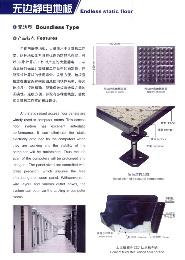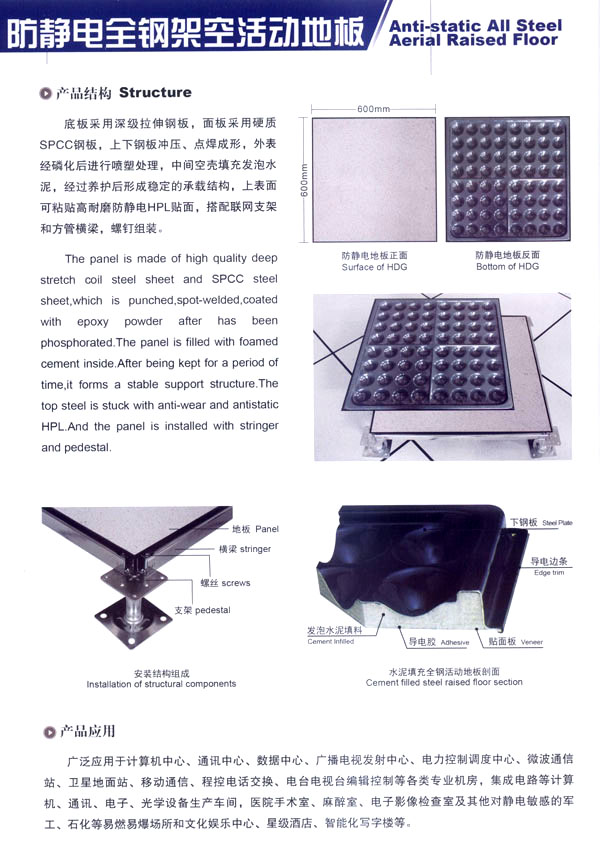 常州星峰活動地板有限公司地處常州市橫林鎮(zhèn)前豐工業(yè)園區(qū),東鄰無錫。南有312國道。京杭大運河、北臨滬寧高速公路,交通便捷。本公司資質較深,是生產(chǎn)鋼質抗靜電地板的專業(yè)廠家。十多年來積累了豐富的經(jīng)驗及雄厚的經(jīng)濟實力。并以優(yōu)質的產(chǎn)品、優(yōu)良的售后服務贏得了用戶的一致好評。 本公司生產(chǎn)產(chǎn)品廣泛應用于電子計算機房、通訊機房、電視發(fā)射臺、軍事指揮站、各類實驗室、辦公室及一些管線鋪設比較集中與要求防靜電場所,市場網(wǎng)絡縱橫江蘇、山東、福建、甘肅、上海、北京、安徽、浙江、河南等地。