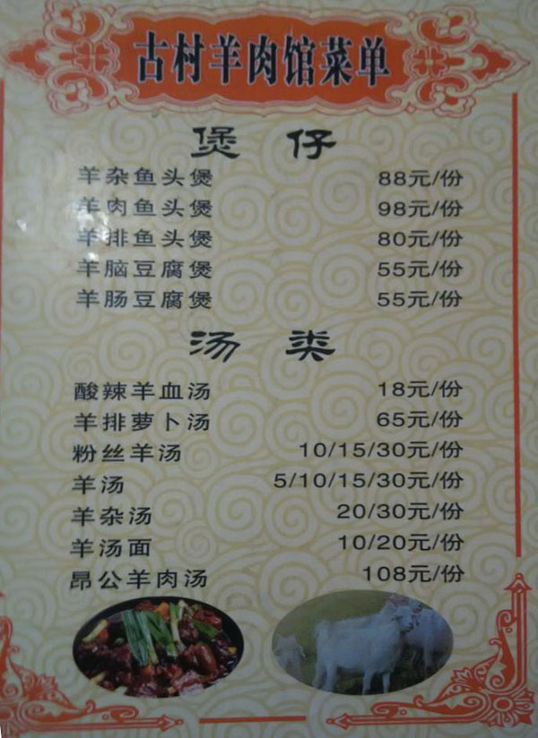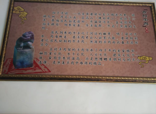 常州市武進(jìn)鄭陸焦溪古村羊肉館選用放養(yǎng)的上等山羊,采用獨(dú)特的配方精心煮制而成,其特點(diǎn):湯呈清色,肉質(zhì)細(xì)膩,味道純正,不腥不膻,色香味俱全。絕對不含任何食品添加劑,是純綠色食品。特別在冬季,有滋補(bǔ)、祛寒、健身養(yǎng)胃之功效! 在傳統(tǒng)羊肉湯基礎(chǔ)上,力求肉鮮湯鮮的制作原則,用火、刀工、器皿等諸多方面加以改進(jìn),F(xiàn)宰活羊,以優(yōu)質(zhì)的山羊?yàn)橹,羊不超年半齡的捶羯蒙羊膻羯為標(biāo)準(zhǔn)。羊湯的主要技術(shù)就是羊肉湯的獨(dú)特配方,羊湯技術(shù)和羊湯的做法完全是兩碼事,羊湯技術(shù)是純正的羊湯的原始積累技術(shù),也就是包括純正羊肉的配方,羊湯做法如放入羊骨頭、羊肉等,而天然居羊湯之所以出類拔萃,因其羊的湯呈清色狀,鮮潔爽口,不腥不膻,不粘不膩,獨(dú)具特色。用新鮮羊骨、羊肉、羊肚、羊頭、羊腸等羊下水,加以傳統(tǒng)香料配方熬制。由于湯呈清色,喝起來香而不膻,入口鮮潔爽口、熱燙濃香,營養(yǎng)豐富。