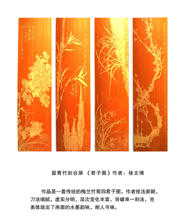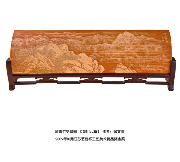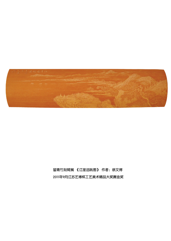 徐博(藝名文博),1973年生,江蘇武進(jìn)人,江蘇省省名人,高級工藝美術(shù)師,常州市留青竹刻非遺傳承人,常州工藝美術(shù)家協(xié)會理事,被譽(yù)為當(dāng)今中國最具創(chuàng)新意識的新銳竹刻家代表,多次獲得國家工藝美術(shù)大獎?釔哿羟嘀窨痰男煳牟┵p竹為樂,以竹詠志,借竹抒懷,悉心探索留青竹刻的藝術(shù)表現(xiàn)。在中國工藝美術(shù)大師蕭劍波的精心指導(dǎo)下,開創(chuàng)留青水墨山水之技法,更好的體現(xiàn)了竹刻淡雅清秀的藝術(shù)風(fēng)格,并不斷汲取書畫、攝影、雕塑等藝術(shù)精華,不斷滋養(yǎng)藝術(shù)情趣,提升擴(kuò)展胸襟人格的同時也逐步形成了其形神兼?zhèn),虛實相生,氣韻生動的藝術(shù)特點,作品為眾多的國內(nèi)外收藏家珍藏。