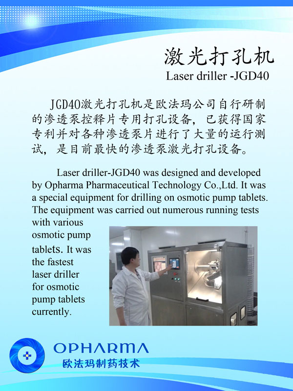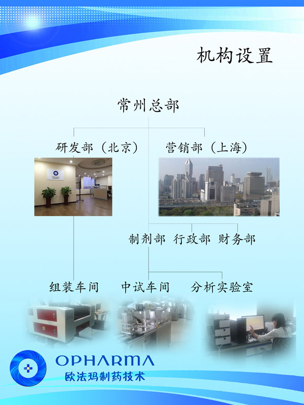 常州歐法瑪制藥技術(shù)有限公司位于長(zhǎng)江三角洲黃金腹地——常州。地理位置優(yōu)越、交通便捷,由鐵路、公路、水路、民航形成了一張立體交叉的交通網(wǎng)絡(luò)。 公司創(chuàng)建于2013年,是一家集研發(fā)、生產(chǎn)和銷售為一體,專業(yè)從事高速激光打孔機(jī)、滲透泵制劑研發(fā)、生產(chǎn)和銷售。目前公司擁有員工20人,科技研發(fā)和技術(shù)人員占員工總數(shù)80%以上,其中本科以上學(xué)歷占80%以上。 公司始建以來,以前瞻的科學(xué)規(guī)劃,通過自主研發(fā),解決了高速激光打孔機(jī)諸多的世界難題,使之達(dá)到40片/秒以上且精確打孔的國(guó)際領(lǐng)先水平;同時(shí)開發(fā)廢片自動(dòng)識(shí)別、剔除功能,以滿足客戶的實(shí)際所需。公司與瑞士等國(guó)家研究機(jī)構(gòu)的科技合作,以高速激光打孔機(jī)為基礎(chǔ),建設(shè)了滲透泵制劑研發(fā)和中試生產(chǎn)車間,開發(fā)了多種藥物的滲透泵制劑,形成了從關(guān)鍵設(shè)備研制,新制劑開發(fā)、工藝配套,到批量生產(chǎn)測(cè)試的滲透泵制劑開發(fā)全過程技術(shù)團(tuán)隊(duì)和研究設(shè)施。公司瞄準(zhǔn)現(xiàn)代新型釋藥系統(tǒng),吸收國(guó)內(nèi)外高端人才,努力開拓控緩釋技術(shù)、靶向給藥技術(shù)及智能給藥技術(shù)。 2013年公司被評(píng)為黑馬大賽“創(chuàng)業(yè)組50強(qiáng)”、“領(lǐng)軍人才創(chuàng)業(yè)重點(diǎn)企業(yè)”;2014公司通過了IS09001-2008質(zhì)量管理體系認(rèn)證、CE認(rèn)證、江蘇省質(zhì)量信得過企業(yè)。