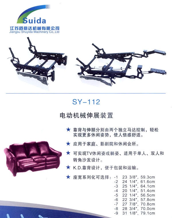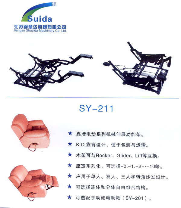 江蘇舒意達(dá)機(jī)械有限公司是一家集研發(fā)設(shè)計,生產(chǎn)制造及銷售的專業(yè)家具五金企業(yè)。公司成立于2006年,座落于風(fēng)景秀麗的江南常州,交通運(yùn)輸?shù)锰飒?dú)厚,為海內(nèi)外客商的來往交流,洽談和供貨提供了諸多便利,公司占地面積28000平方米,生產(chǎn)廠房面積18000平方米,獨(dú)立的辦公樓,擁有良好的工作環(huán)境。 我們的經(jīng)營思理念:堅持以人為本,科技為先,用先進(jìn)的設(shè)備,好的工藝流程制造一流的產(chǎn)品。 我們的口號:保證以優(yōu)秀的品質(zhì)服務(wù)于客人,我們的目標(biāo):研發(fā)更多舒適的產(chǎn)品,帶來生活的享受。 公司誠邀海內(nèi)外客商前來指導(dǎo)洽談,攜手共進(jìn),共造雙贏。