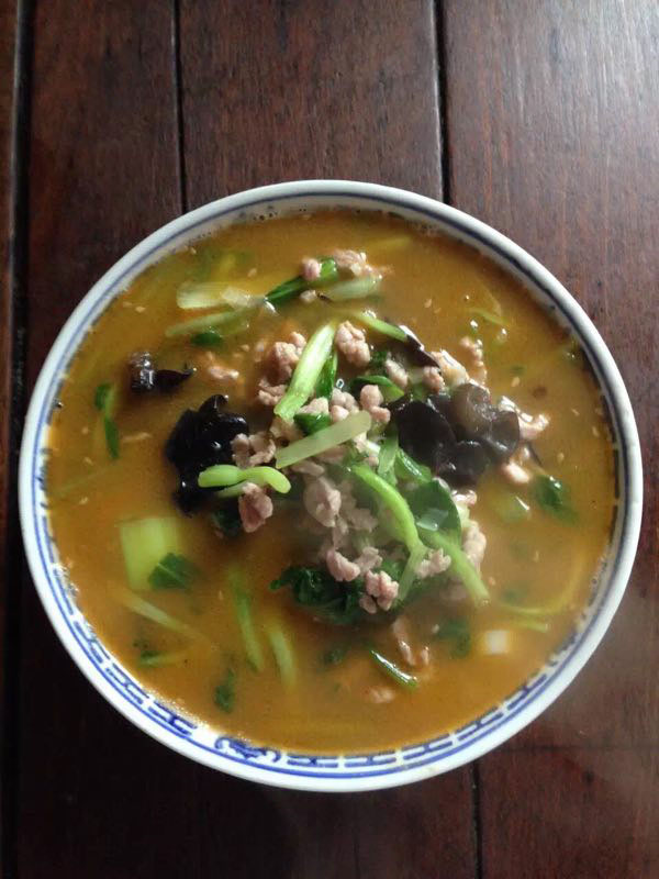 武進(jìn)區(qū)青城面館經(jīng)營面積280平方米左右,主要特色是現(xiàn)炒肉絲,素菜蓋澆面,面館創(chuàng)始人今年63歲的王蘭珍,她對美食有著高于常人的悟性。她開過饅頭店,開過小飯館,承包過食堂,燒菜、取料樣樣在行,吃過的人常常贊不絕口。 20世紀(jì)初,在跟德興面館的老師傅學(xué)了做面手藝后,王蘭珍萌生了開一家面館的想法,除了可以養(yǎng)家糊口,最重要的是想讓更多人嘗嘗自己的手藝。于是,她在自己的住處擺起了幾張桌椅,面館就算正式營業(yè)了。因?yàn)榧易∏喑菢,王蘭珍干脆取名“青城面館”。 “從早上5點(diǎn)多開始營業(yè),到下午1點(diǎn)多打烊,一天至少要賣掉300多碗面,用掉近160斤面粉!睘楹吻喑敲骛^的面條如此受歡迎,兒媳婦陸偉紅說秘訣在于湯頭和澆頭。湯頭分白湯和紅湯,白湯是由10斤豬骨頭熬制而成,湯色清澈而味道濃郁;紅湯以骨頭湯作底湯,加入茴香、甘草、草果等20多種中草藥,以及糖、醬油等調(diào)味品,鮮而不腥,散發(fā)出陣陣香味。 和一般面館事先燒制好澆頭,放在盆里供客人選擇不同,青城面館的澆頭都是一份份現(xiàn)炒的,特別講究食材的新鮮。就拿暢銷的肉絲蔬菜紅湯面來說,要先起猛火,把肉絲、木耳、蘑菇、青菜等食材放一起煸炒至香,然后澆在撈起的面條上。一碗面出來,現(xiàn)炒的澆頭與面條融合,味道香郁至極。 遙觀人的早晨,醒得有些早。對很多遙觀人來說,美好的一天是從青城面館開始的。那一碗碗現(xiàn)炒的蓋澆面,筋道爽滑、醬香味濃,溫存著他們的胃與記憶,帶來刻進(jìn)骨子里的家鄉(xiāng)味道。