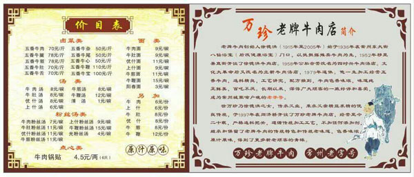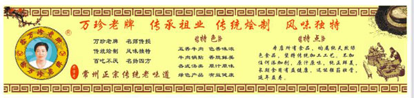 老牌牛肉創(chuàng)始人徐德洪始于1935年在常州東大街八仙浴室門口,以挑擔(dān)擺攤賣牛肉為生,1952年移至縣直街開設(shè)了徐德洪牛肉店。1958年公私合營改名為四時興牛肉店。文化大革命后又改名為立新牛肉店,1979年退休。他一生加工經(jīng)常五香牛肉,選料精良,工藝講究,配方獨到,牛肉色香味濃,味道純正鮮美,百吃不厭。長期以來,深得廣大顧客的一致好評和喜愛,成為常州城家喻戶曉的老字號。 徐萬珍乃徐德洪之女,傳承父業(yè),秉承父親精益求精的優(yōu)良傳統(tǒng),于1997年在同濟(jì)橋開設(shè)了萬珍老牌牛肉店,經(jīng)營至今二十載,嚴(yán)格選料把關(guān),遵循傳統(tǒng)加工工藝,不加工任何添加劑,繼承和保留了老牌牛肉的傳統(tǒng)特色和傳統(tǒng)老味道,色香味濃,原汁原味,得到了更多新老顧客的青睞。