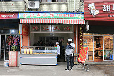 武進區(qū)前黃韓記點心坊從事各式點心制作已有兩代人,特色是雞蛋油條,特色大麻糕,小籠包及各種饅頭,大麻糕又酥又松。 天光大亮,前黃寨橋農(nóng)貿(mào)市場已是人來人往,熱鬧非凡。 靠近市場的一排店面房,聞著隱約飄出的芝麻香,記者找到了坐落其中的韓記點心坊。 油條在鍋內(nèi)滋滋翻滾、各種口味的麻糕在柜臺里依次擺開、包子隱藏在散著熱氣的蒸鍋內(nèi)……沉寂一個晚上的胃,頓時有些不安于寂寞。 韓記大油條: 飯店、麻辣燙店點名要它 60斤面粉,大約400根油條,這是韓記點心坊每天要賣掉的量。 將預(yù)先調(diào)制好的面團鋪開,切成均勻的長條,每兩條上下疊好,用小竹板中間一壓、拎起兩頭一拉,放進油鍋,滿鍋的油就開始沸騰起來。 老板韓效慶做起油條來一氣呵成,他的油條會用到低筋、中筋、高筋三種面粉,根據(jù)季節(jié)不同,配比也不同,再加雞蛋、泡打粉發(fā)面,炸好后吃起來特別香脆。 “附近市場飯店、麻辣燙店用的油條都是我這里的,有些食客點名要吃我們店里的油條!表n效慶自豪地介紹說,他做點心的手藝是從父親那里學(xué)來的。在父親手下學(xué)了7年后,他先后前往常州迎桂饅頭店、興隆園美食城、常州麻糕店等地打工,最終形成了自己的點心配方。 兩年前,韓效慶回到家鄉(xiāng),在農(nóng)貿(mào)市場租店面開了點心坊,這里也成了市場上最熱鬧的一家店鋪。 韓記大麻糕: 冷著吃也很酥脆 向外地人介紹常州地道美食,大麻糕是絕對繞不過的。一家好的麻糕店,一定要具備以下特點:清晨排長隊;麻糕被帶往外地甚至海外;死忠粉甚多。而這些特點,韓記大麻糕都具備。 要問韓記大麻糕與其他麻糕有什么不同,韓效慶還真說出了好幾個區(qū)別。例如,很多傳統(tǒng)麻糕使用烤桶,烤桶內(nèi)用的是煤,而韓記用的是大烤箱。再比如,一些外地朋友吃到的麻糕“干乎乎、木噱噱”,“這是因為他們買到的麻糕采取了普通的發(fā)面方式,再放進爐子或烤箱一烤,水分蒸發(fā)了,肯定硬!表n效慶經(jīng)過多次嘗試,用麥芽糖發(fā)面,麥芽糖具有保濕性,使水分不易蒸發(fā),對麻糕的保濕與品質(zhì)的維持有較好的效果,這樣做出來的麻糕即便冷了也依舊酥脆。甜味的韓記大麻糕也不使用白糖,而是采用果糖,麻糕冷后也不會結(jié)塊,保持了更好的口感。 在韓記,大麻糕做好后,表面的芝麻也不是撒上去的,而是印上去的。芝麻經(jīng)烘烤之后顆粒飽滿,呈象牙色,使大麻糕的香、脆得到充分體現(xiàn)。 韓記大肉包:糅合豆瓣醬的創(chuàng)新美味 下粉、摻水、攪拌、揉搓……棉絮狀的面粉像被施了魔法,不一會兒就變成了一個白凈光滑的面團。 韓效慶將面團放置在一旁,待它慢慢餳著,轉(zhuǎn)手拿出已經(jīng)拌好的餡料,“你能聞出什么味道嗎?”在確定記者猜不出后,他開始娓娓道來——豬肉都是后腿肉,餡料里不放鹽、味精,全靠豆瓣醬和糟方提味。 待面團和餡料都準(zhǔn)備就位,只見韓效慶一手拿著切好的面團,一手握著搟面棍,飛速地邊搟邊旋轉(zhuǎn),一張薄厚適中的面皮眨眼就制作完成了。他將搟好的面皮放于左手手心,舀起一勺肉餡置于面皮中央,熟練地將面皮捏出十多道褶皺,輕輕一扭,一個肉包躍然眼前。 待包子蒸好,食客們紛紛起身,等著帶走屬于自己的那一份美味。記者也忍不住拿起一個,咬上一口,咸鮮的美味、撲鼻的豆瓣香,那種特別的味道只有品嘗過的人才能體會。 食客點評:食客孫桂洪:我是寨橋人,住在湖塘好幾年了,可每隔一段時間,我就特別想那酥脆的油條和熱乎的肉包。驅(qū)車前往韓記點心坊,點上一碗豆腐湯,要兩樣點心,趁熱一股腦兒全都塞進胃里,每次吃完都特別滿足。
