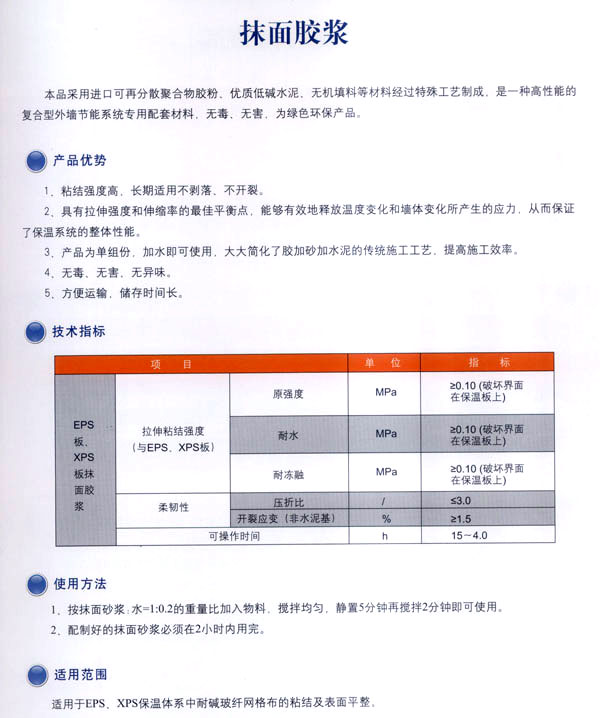常州市福康新型建材有限公司是以研制開(kāi)發(fā)、生產(chǎn)、銷(xiāo)售、施工、技術(shù)服務(wù)為一體的化學(xué)建筑材料的專(zhuān)業(yè)企業(yè),通過(guò)與歐洲著 名建筑材料公司和國(guó)內(nèi)權(quán)威科研機(jī)構(gòu)合作,并聘請(qǐng)國(guó)家級(jí)專(zhuān)家為技術(shù)顧問(wèn),開(kāi)發(fā)出適合我國(guó)市場(chǎng)的福康EPS、XPS及聚苯顆粒外墻外保溫節(jié)能系統(tǒng)。 公司的生產(chǎn)線全部采用國(guó)內(nèi)先進(jìn)的電腦控制自動(dòng)化設(shè)備,配備了專(zhuān)業(yè)的實(shí)驗(yàn)中心,并且采用進(jìn)口的可再分散乳膠粉為基料,確保?低鈮ν獗毓(jié)能系統(tǒng)具有性能優(yōu)異、安全可靠,綠色環(huán)保、適用性強(qiáng)的高品質(zhì)特點(diǎn)。 公司開(kāi)發(fā)的\'?低鈮ν獗叵到y(tǒng)\'被列為江蘇省科技成果推廣項(xiàng)目。整個(gè)生產(chǎn)流程依照質(zhì)量體系的要求,實(shí)行嚴(yán)格的監(jiān)控和檢測(cè),為生產(chǎn)優(yōu)質(zhì)產(chǎn)品提供保證。高品質(zhì)的?低鈮ν獗叵到y(tǒng),提供從熱工設(shè)計(jì)、產(chǎn)品開(kāi)發(fā)、生產(chǎn)銷(xiāo)售及工程施工全程服務(wù)的一體化解決方案。 公司本著“綠色環(huán)保、節(jié)約能源、造福人類(lèi)”的理念。用我們一流的產(chǎn)品和優(yōu)秀的服務(wù),打造出一個(gè)個(gè)節(jié)能康居示范工程,為人類(lèi)營(yíng)造出舒適健康的居住環(huán)境。我們?cè)笧橹袊?guó)節(jié)能事業(yè)的發(fā)展積極努力,更上一層樓。 公司組建高效的生產(chǎn)經(jīng)營(yíng)管理模式,設(shè)立專(zhuān)業(yè)技術(shù)服務(wù)機(jī)構(gòu)。配備售后的優(yōu)質(zhì)服務(wù)。實(shí)行原材料、運(yùn)輸、安裝一條龍服務(wù)。經(jīng)本公司施工之后,貴公司可以直接批涂料、裝門(mén)窗、貼瓷磚,保證絕無(wú)任何質(zhì)量問(wèn)題。