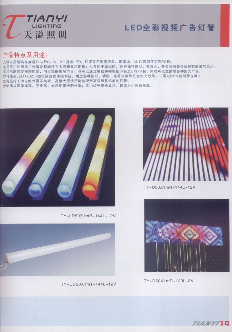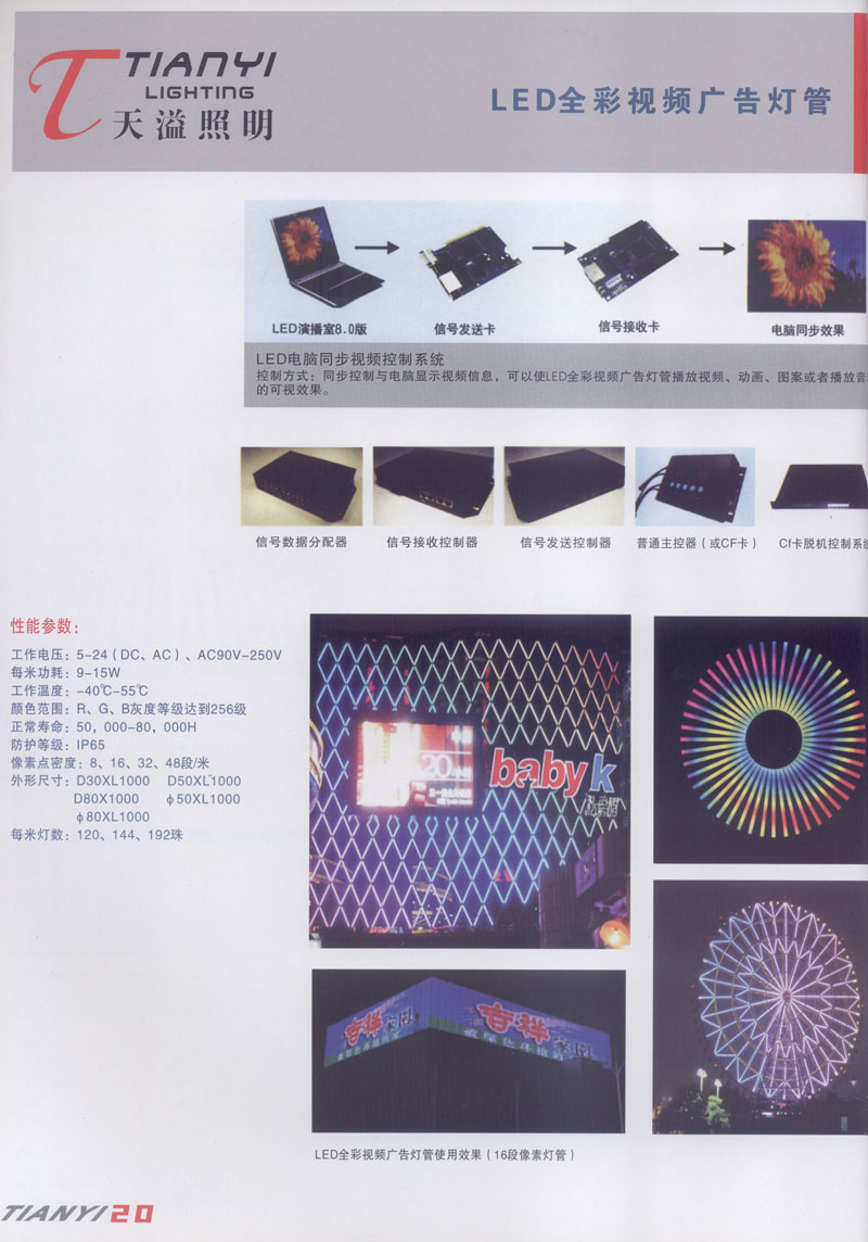 天溢照明是中國(guó)領(lǐng)先的專業(yè)從事LED廣告照明裝飾燈具設(shè)計(jì)、系統(tǒng)開(kāi)發(fā)、燈具制造、工程服務(wù)一體的專業(yè)型公司,本公司產(chǎn)品已廣泛應(yīng)用于全國(guó)大多數(shù)城市夜景亮化景觀照明、酒店休閑娛樂(lè)夜場(chǎng)夢(mèng)幻燈光、戶內(nèi)外廣告宣傳、建筑及室內(nèi)照明以及家居裝飾等場(chǎng)合。