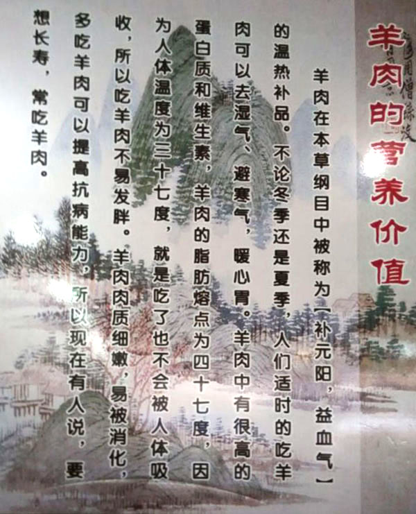 鄭陸橋頭羊肉館主要從事羊肉、羊肉制品的加工。羊肉性溫?zé)、補(bǔ)氣滋陽(yáng)、暖中補(bǔ)氣、開(kāi)胃健脾、還可以去濕氣避寒冷,暖胃寒、養(yǎng)吃百草、養(yǎng)根據(jù)自身生理需要選擇草木、固羊有“百藥之庫(kù)”之稱(chēng)。古人云:多吃羊肉、健康長(zhǎng)壽。