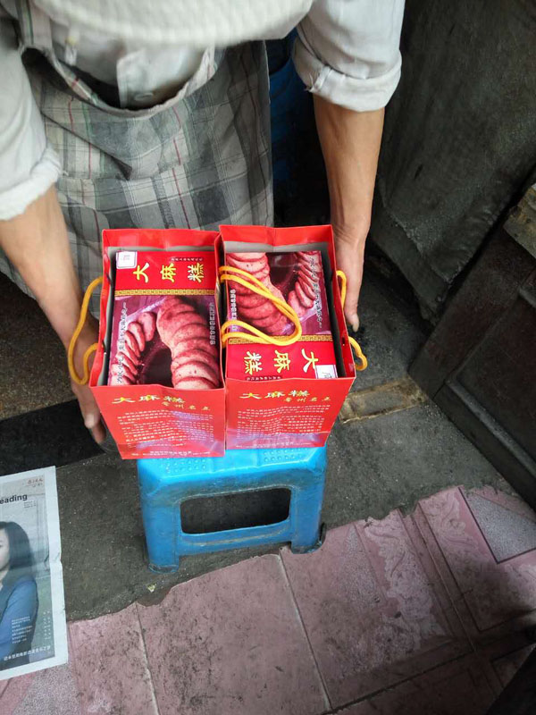 常州人夏亞寶的大麻糕技術(shù)是上世紀(jì)80年代更著新橋麻糕店的師傅周金生學(xué)的,1999年開店至今,在附近一帶做得小有名氣,向?qū)W校供應(yīng)麻糕,整整6年。 “做大麻糕太辛苦,半夜爬起來準(zhǔn)備熱爐子、和面、做餡,年輕人吃不了這苦,15年我都沒請人,和老婆一起打過來的。”夏亞寶指著手臂上的燙傷的痕跡說,能堅(jiān)持烤桶制作大麻糕的真心不多了。夏亞寶的烤桶是自制的,爐心常州買不到,他托人從無錫買來,15年前85元一個,前年漲到150元!翱就暗臓t心其實(shí)就是以前船上人家用的行爐”,去底后鑿個洞,然后外面加上隔熱材料,最后貼上鐵片”。 15年,這已經(jīng)是第三只貼桶了。