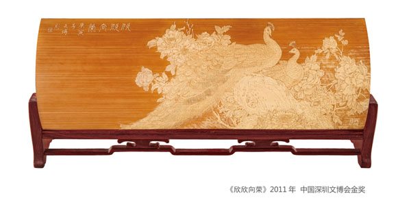 得獎情況 1、扇形擺件《花鳥》2004年9月太湖博覽會金獎 2、《蘭亭序》2008年11月江蘇藝博杯工藝美術(shù)精品獎銀獎 3、《雄風圖》2008年11月江蘇藝博杯工藝美術(shù)精品獎創(chuàng)意獎 4、《靜音》2008年11月“天工藝苑•百花杯”中國工藝美術(shù)精品獎銀獎 5、《人物》2008年12月中國收藏藝術(shù)精品博覽會金獎 6、《花鳥》200 8年12月中國收藏藝術(shù)精品博覽會銀獎 7、《青竹鳥語》2008年12月中國收藏藝術(shù)品博覽會“入圍收藏品” 8、《吉祥富貴》2009年3月“金鳳凰”創(chuàng)新產(chǎn)品設(shè)計大獎賽金獎 9、《黃山云!2009年10月江蘇藝博杯工藝美術(shù)精品獎金獎 10、《花鳥》2009年10月第二屆江蘇旅游商品博覽會最佳產(chǎn)品獎 11、《秋菊圖》2009年11月“天工藝苑•百花杯”中國工藝美術(shù)精品獎銀獎 12、《秋鷹圖》2010年3月“金鳳凰”創(chuàng)新產(chǎn)品設(shè)計大獎賽優(yōu)秀獎 13、《花鳥四屏》2010年3月“金鳳凰”創(chuàng)新產(chǎn)品設(shè)計大獎賽銅獎 14、《荷塘清暑》2010年5月深圳國際文化產(chǎn)業(yè)博覽交易會銅獎 15、《溪山煙云圖》2010年9月江蘇藝博杯工藝美術(shù)精品大獎賽金獎 16、《高士臨風圖》2010年10月“天工藝苑•百花杯”中國工藝美術(shù)精品獎銀獎 17、《溪山煙云圖》2010年11月第二屆東方工藝美術(shù)之都博覽會“迎春花獎” 18、《深山尋隱圖》2011年3月“金鳳凰”產(chǎn)品設(shè)計大獎賽銅獎 19、《欣欣向榮》2011年5月深圳國際文化產(chǎn)業(yè)博覽交易會金獎 20、《江崖遠眺圖》2011年9月江蘇藝博杯工藝美術(shù)精品大獎賽金獎 21、《富春山居圖》2011年10月“天工藝苑•百花杯”中國工藝美術(shù)精品獎金獎 22、《深山訪友》2011年11月中國無錫國際文化藝術(shù)博覽會銀獎 23、《幽谷清音》2012年3月“金鳳凰”創(chuàng)新產(chǎn)品設(shè)計大獎賽銅獎 24、《群芳競艷》2012年10月“儒仕儒家、百花杯”中國工藝美術(shù)精品博覽會金獎 25、《山村渡口圖》2012年12江蘇藝博杯工藝美術(shù)精品大獎賽金獎。 26、《晨妝》2013年4月“金鳳凰”創(chuàng)新產(chǎn)品設(shè)計大獎賽金獎。 27、《和風圖》2013年6月中國(青島)工藝美術(shù)博覽會創(chuàng)新產(chǎn)品設(shè)計大賽金獎。 28、《松壑聽泉》2013年9月江蘇藝博杯工藝美術(shù)精品大獎賽銀獎。 29、《君子圖》2013年11月“國信•百花杯”中國工藝美術(shù)精品獎銀獎 30《碧水輕舟》2014年5月深圳國際文化產(chǎn)業(yè)博覽交易會銀獎。 31、《千巖萬壑圖》2014年10月“中國原創(chuàng)•百花杯”中國工藝美術(shù)精品獎金獎 32、《溪山訪友圖》2014年10月江蘇藝博杯工藝美術(shù)精品大獎賽銀獎 33、《深山云壑》2014年12月深圳冬季國際文化產(chǎn)業(yè)博覽交易會金獎 34、《鷹》2015年深圳文化產(chǎn)業(yè)博覽交易會獲“中國工藝美術(shù)文化創(chuàng)意獎”金獎